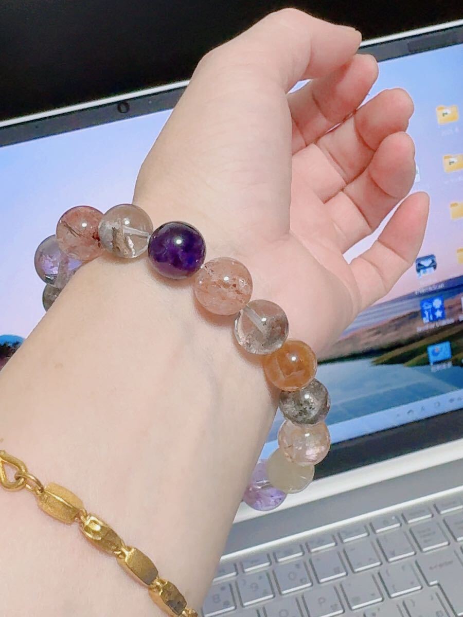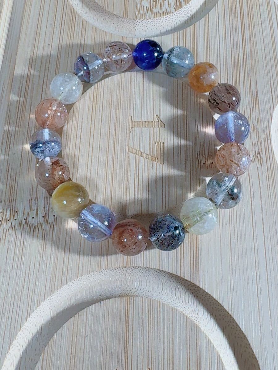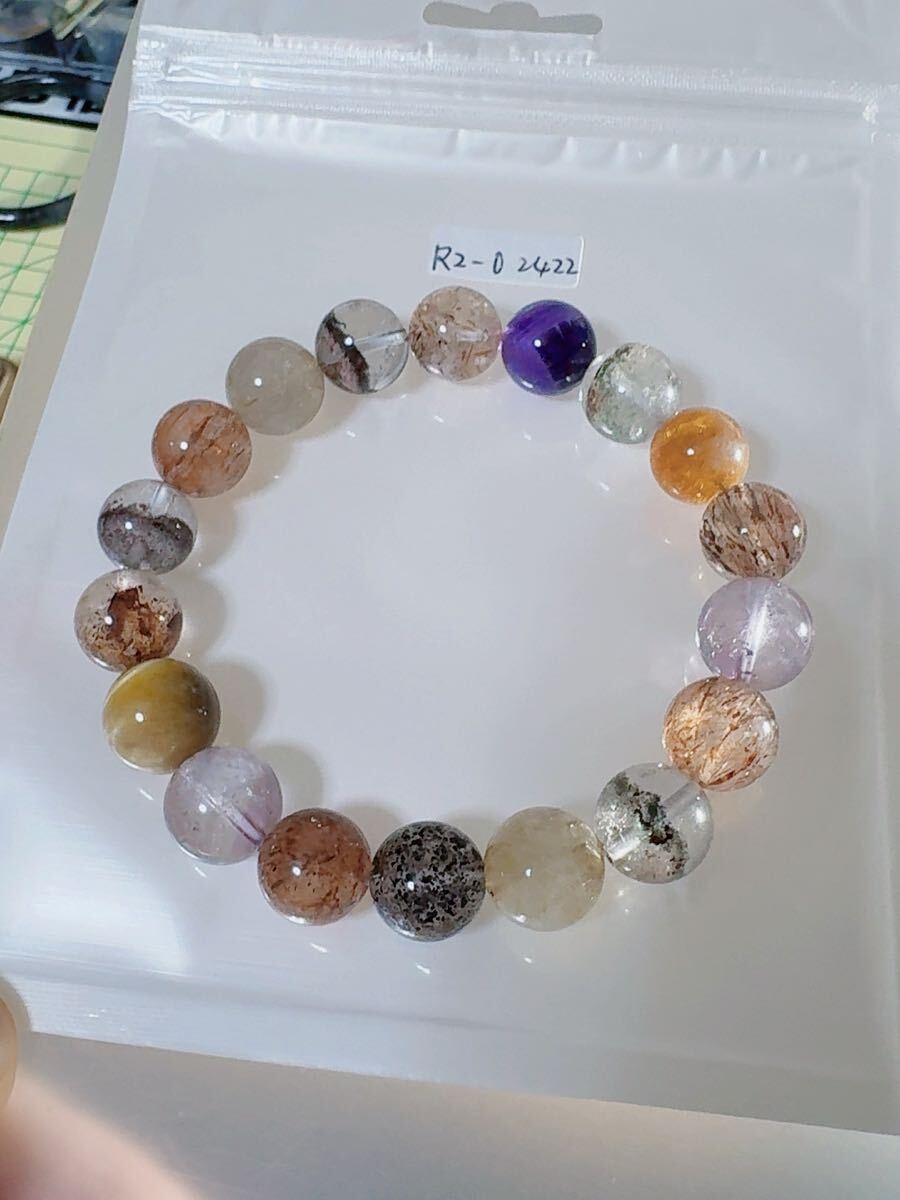R2-02422天然水晶 一点物 スーパーミックス水晶 ブレスレット17cm 天然石 スーパーセブン 開運 幸運 パワーストーン