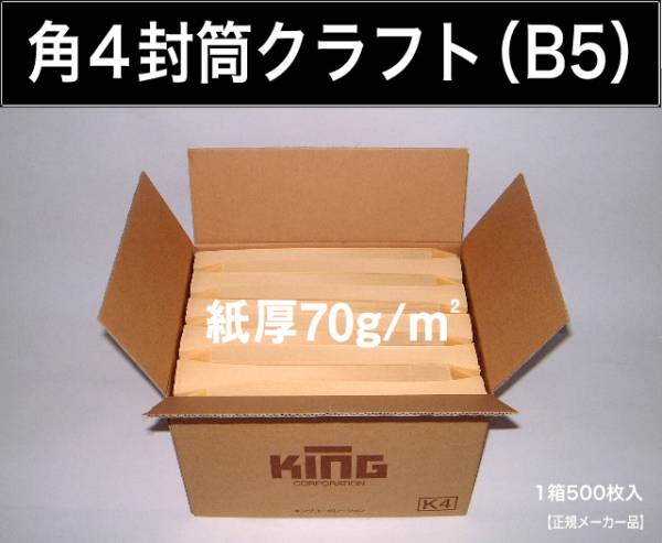 角4封筒《紙厚70g/m2 B5 クラフト 茶封筒 角形4号》500枚 無地封筒 角型4号 B5サイズ対応 キングコーポレーション