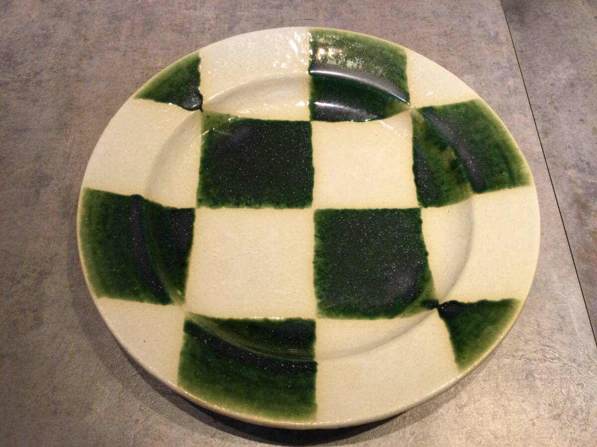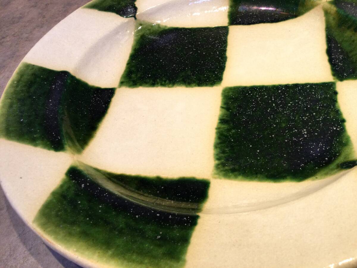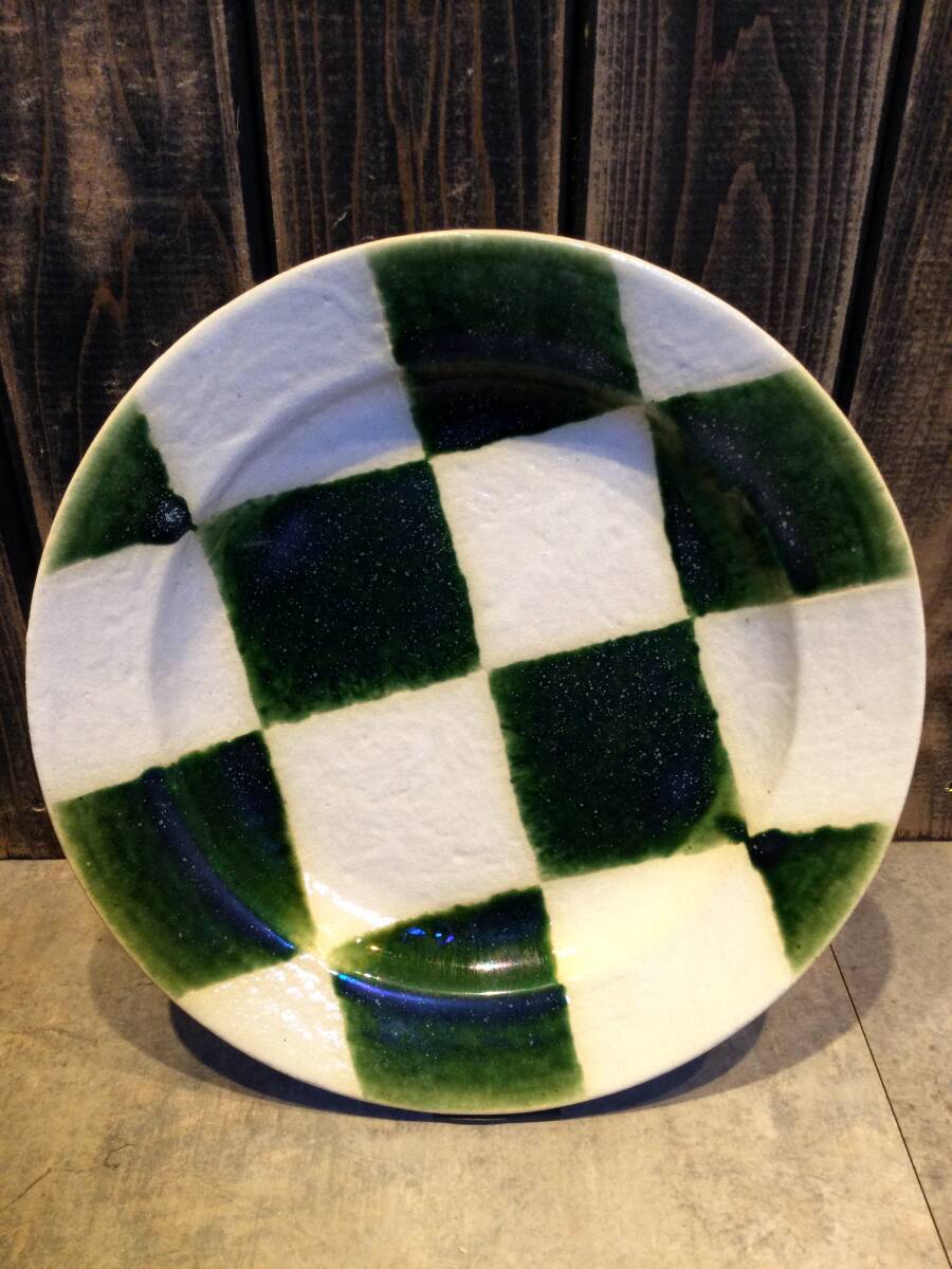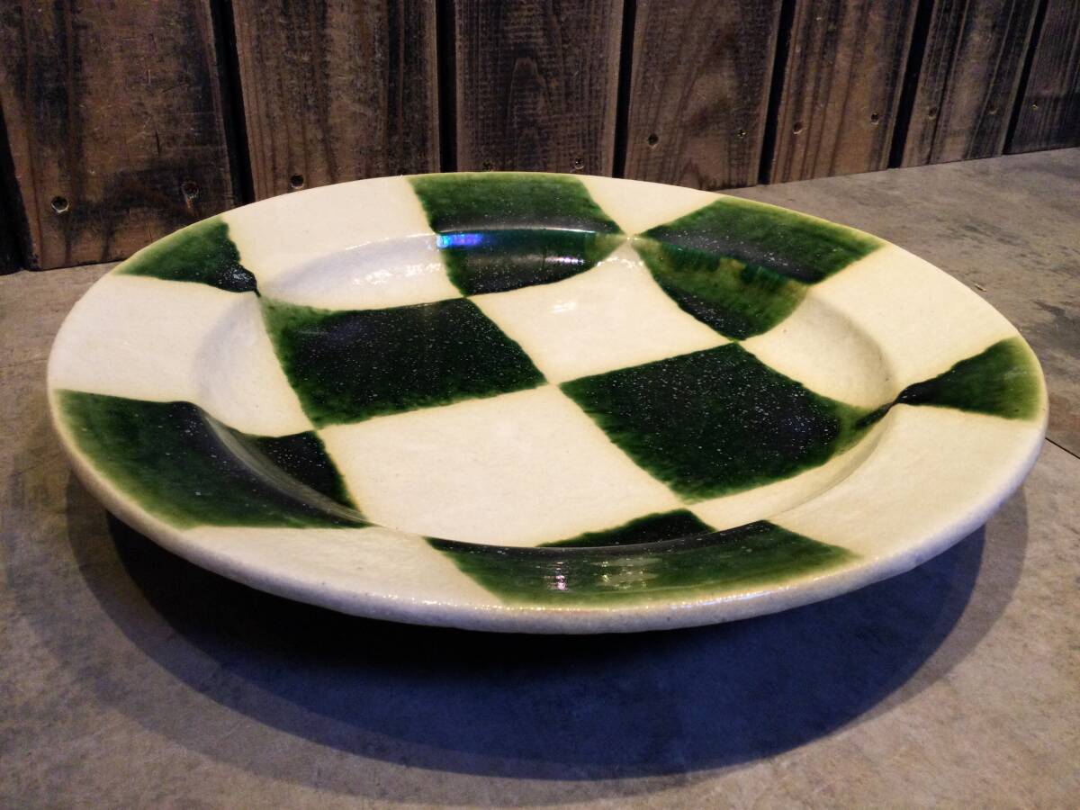 新品・未使用 織部焼 師作 織部市松絵 皿 27㎝ 大皿 盛皿 焼物皿 焼き魚皿 多用途 刺し身皿 保管品