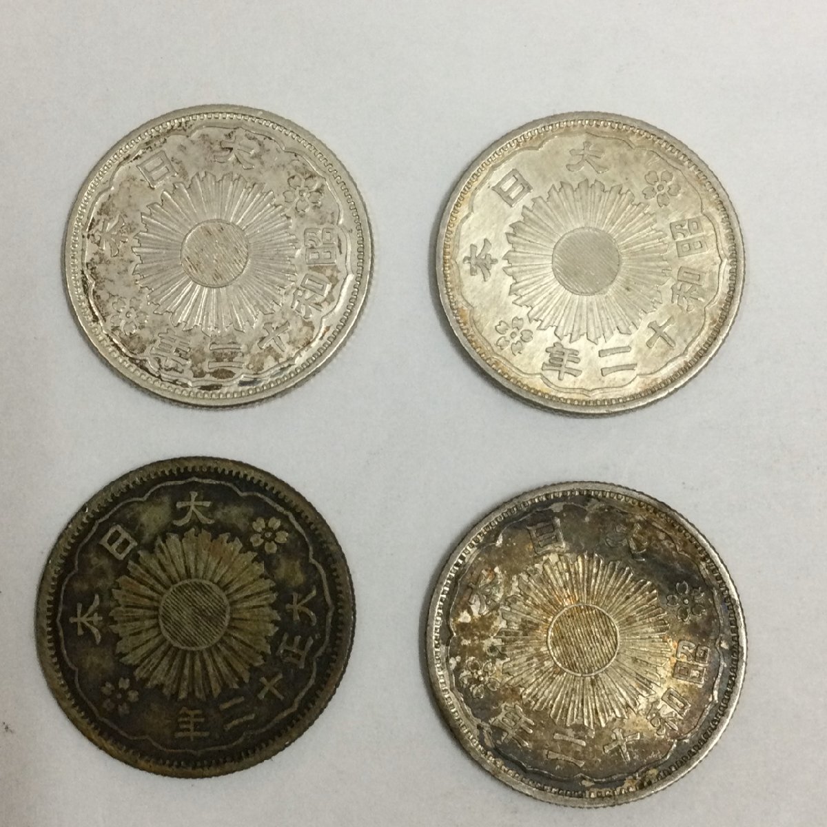 | 20銭 銀貨 ヤタガラス 大正12年×1昭和12年×3 重量 約4.91g×4 計4枚 硬貨 古銭 アンティーク 日本 コイン |