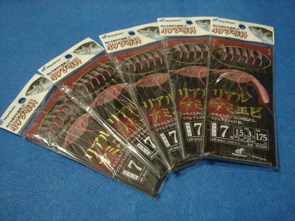 「ハヤブサ サビキ 小アジ専科 リアルアミエビ 7号」の5枚セットです。