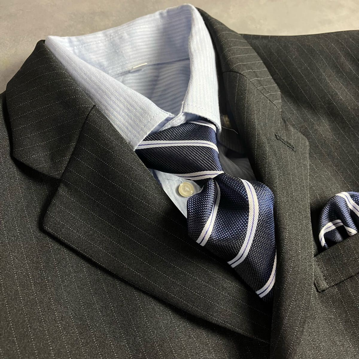ネクタイ・チーフ:紺のレジメンタル