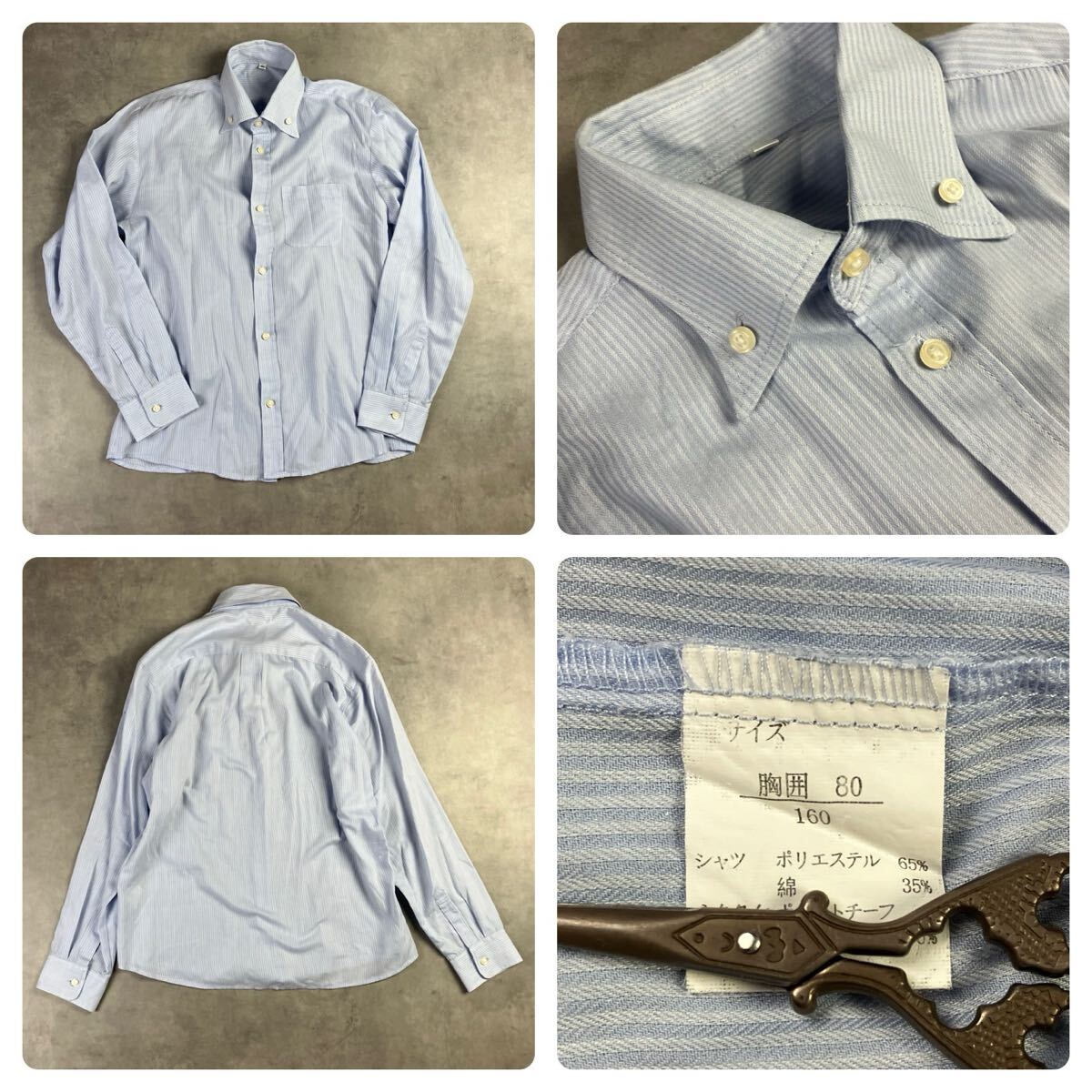 シャツ:水色のストライプ