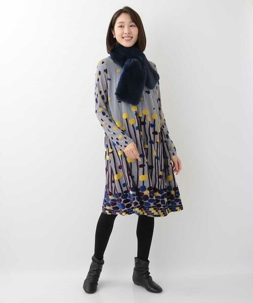 定価約4万円 HIROKO BIS ヒロコビス 花柄パイルジャカードワンピース