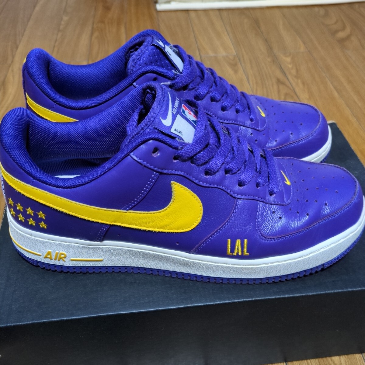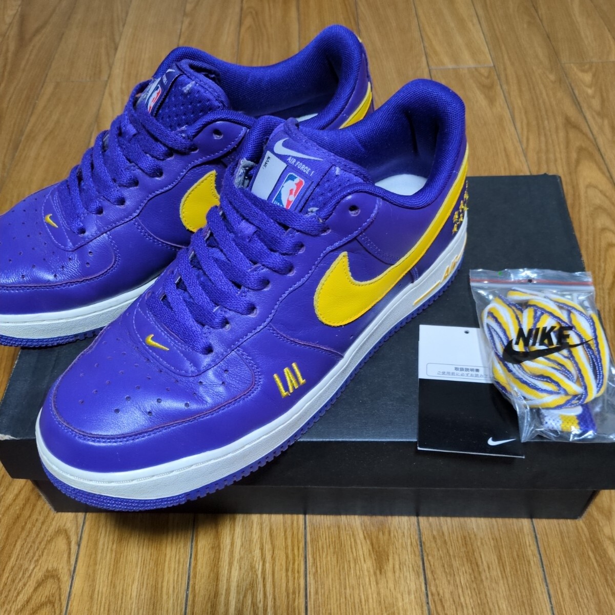 現在のナイキバイユーの前身であるナイキアイディーのときに製作したエアフォース1ロサンゼルスレイカーズモデルです。街履きで数回履きました。