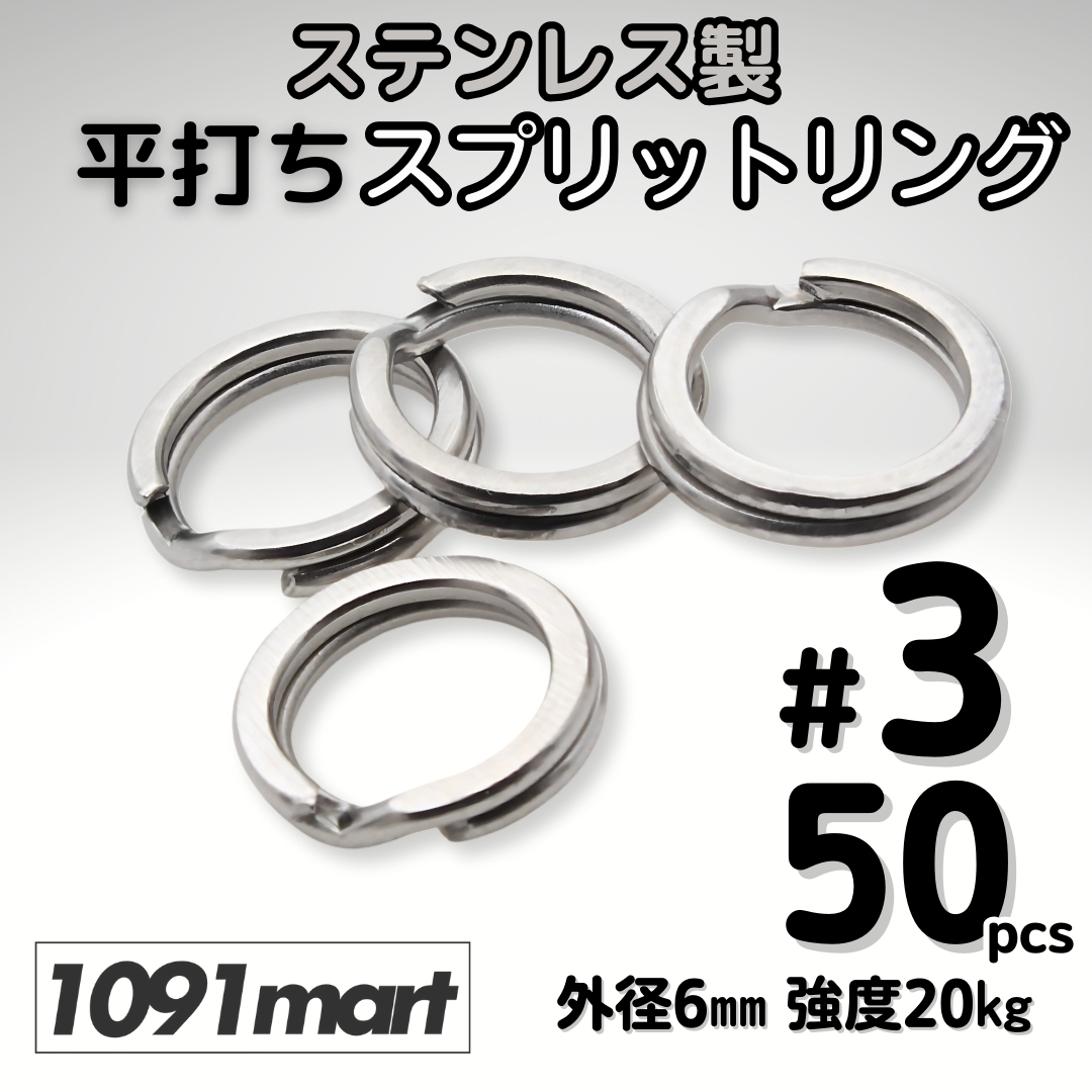 ステンレス製 平打ち加工 スプリットリング #3 外径6㎜ 50個セット【1091mart】