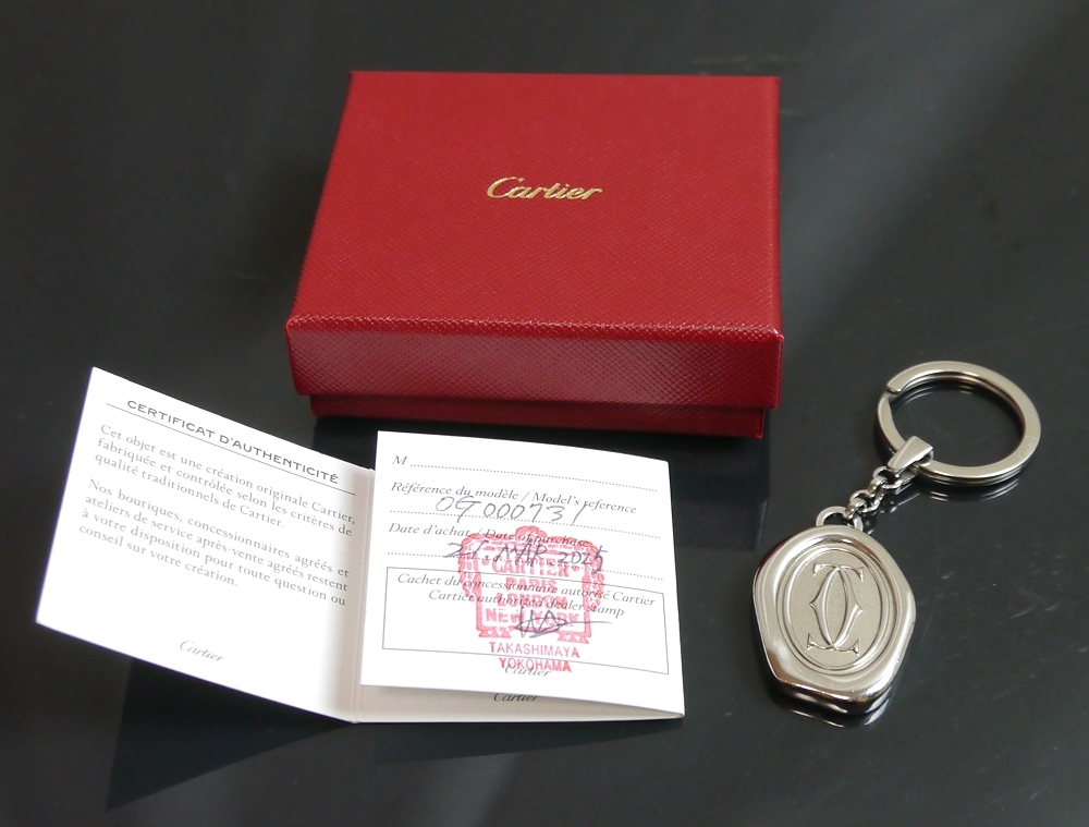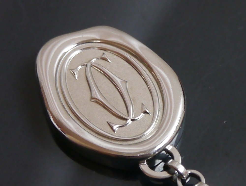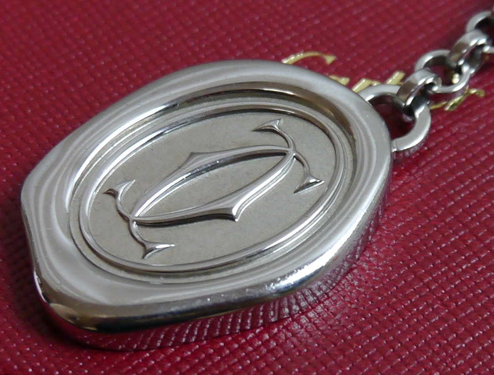 極上品 カルティエ キーホルダー キーリング ワックスシール ロゴ シルバー