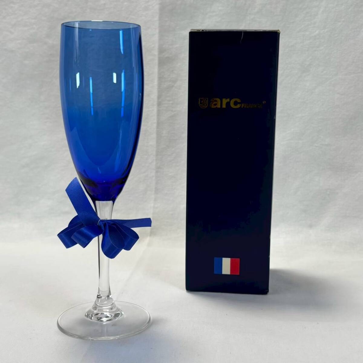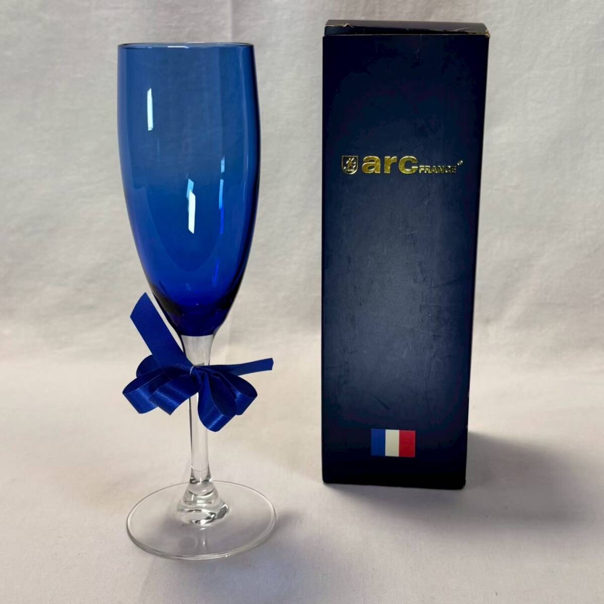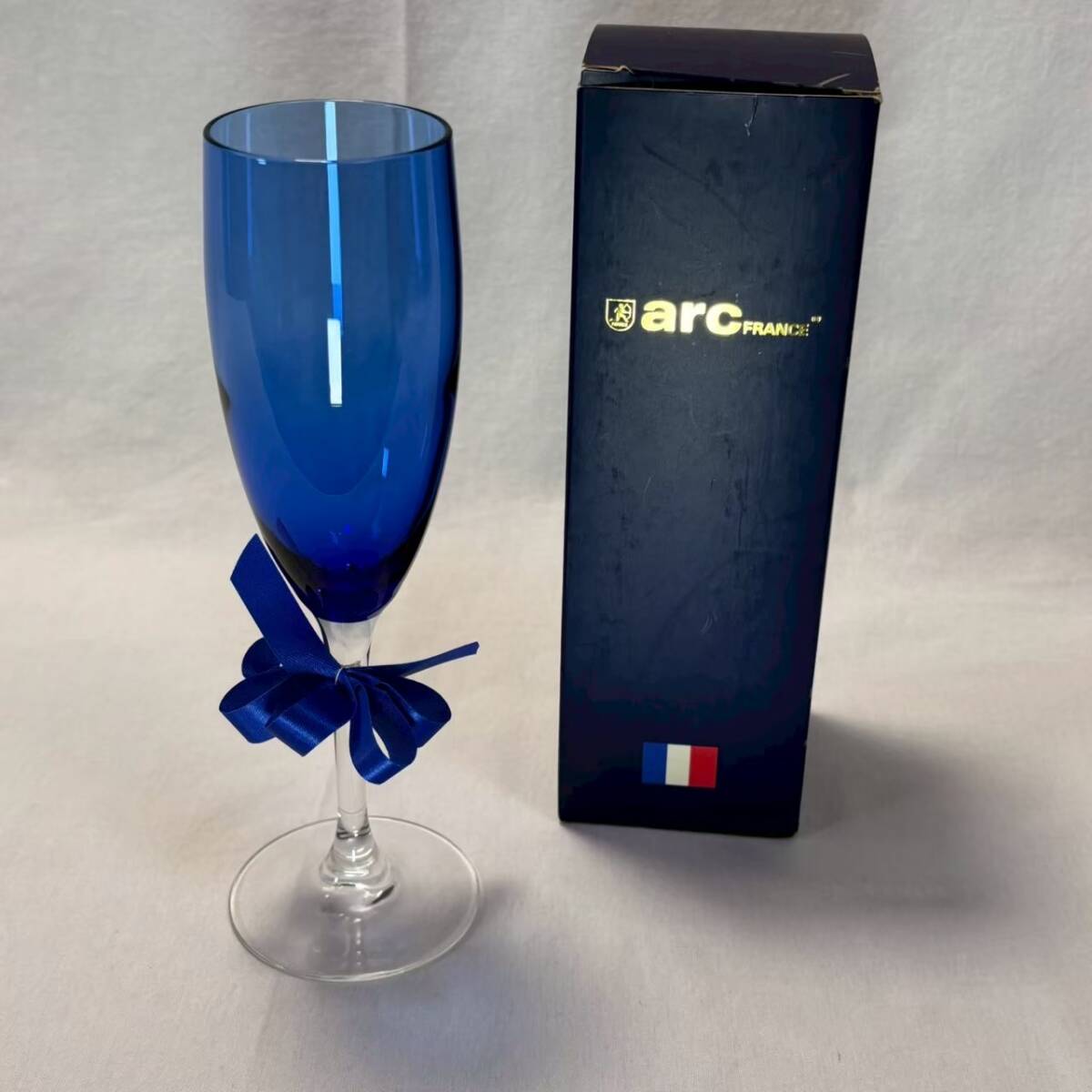 【美品】ARC FRANCE ブルー シャンパングラス ペア / アルクフランス/No.335