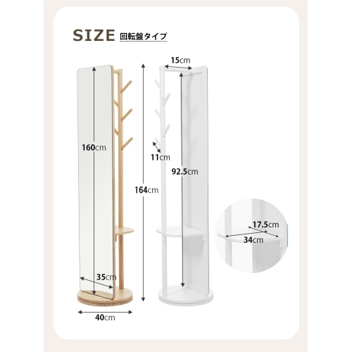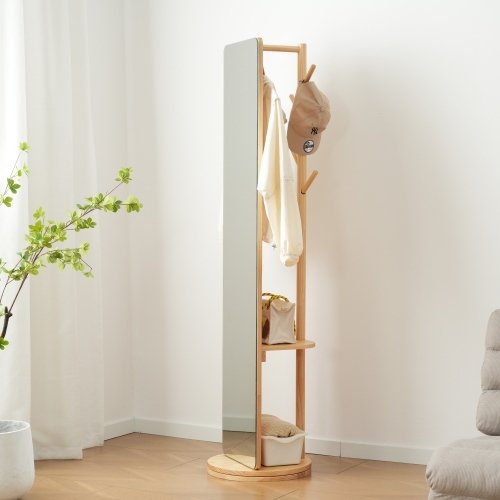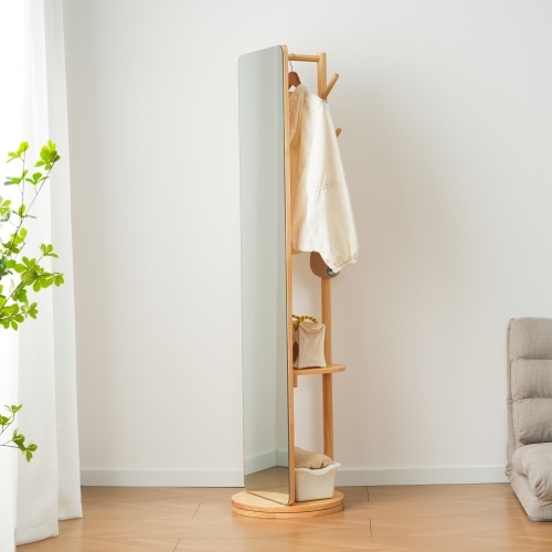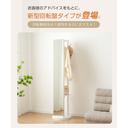 • 姿見鏡とハンガーラックの賢い組み合わせ360°回転と衣類収納機能が追加され、より使いやすくなります。