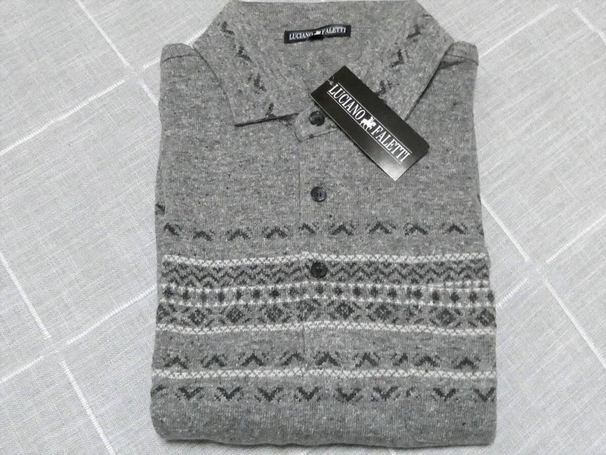 タグ付き ニットシャツ メンズLL LUCIANO FALETTI ルシアーノ フェレッティー グレー系 未着用