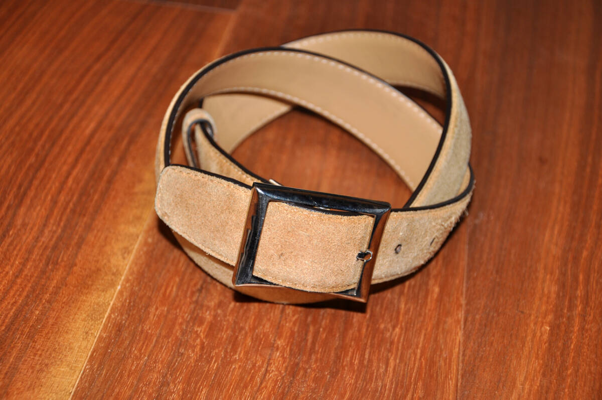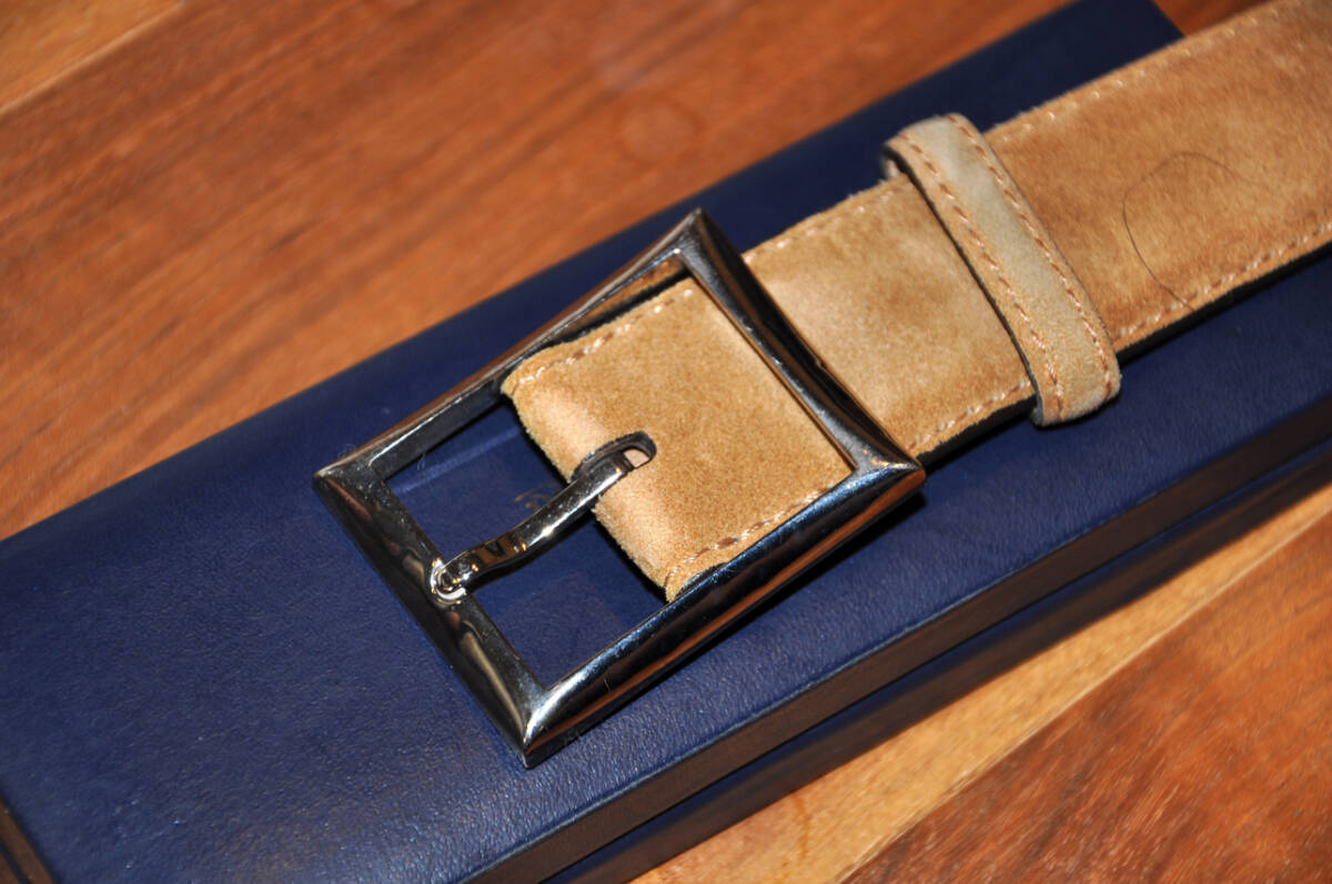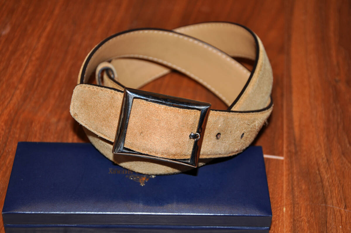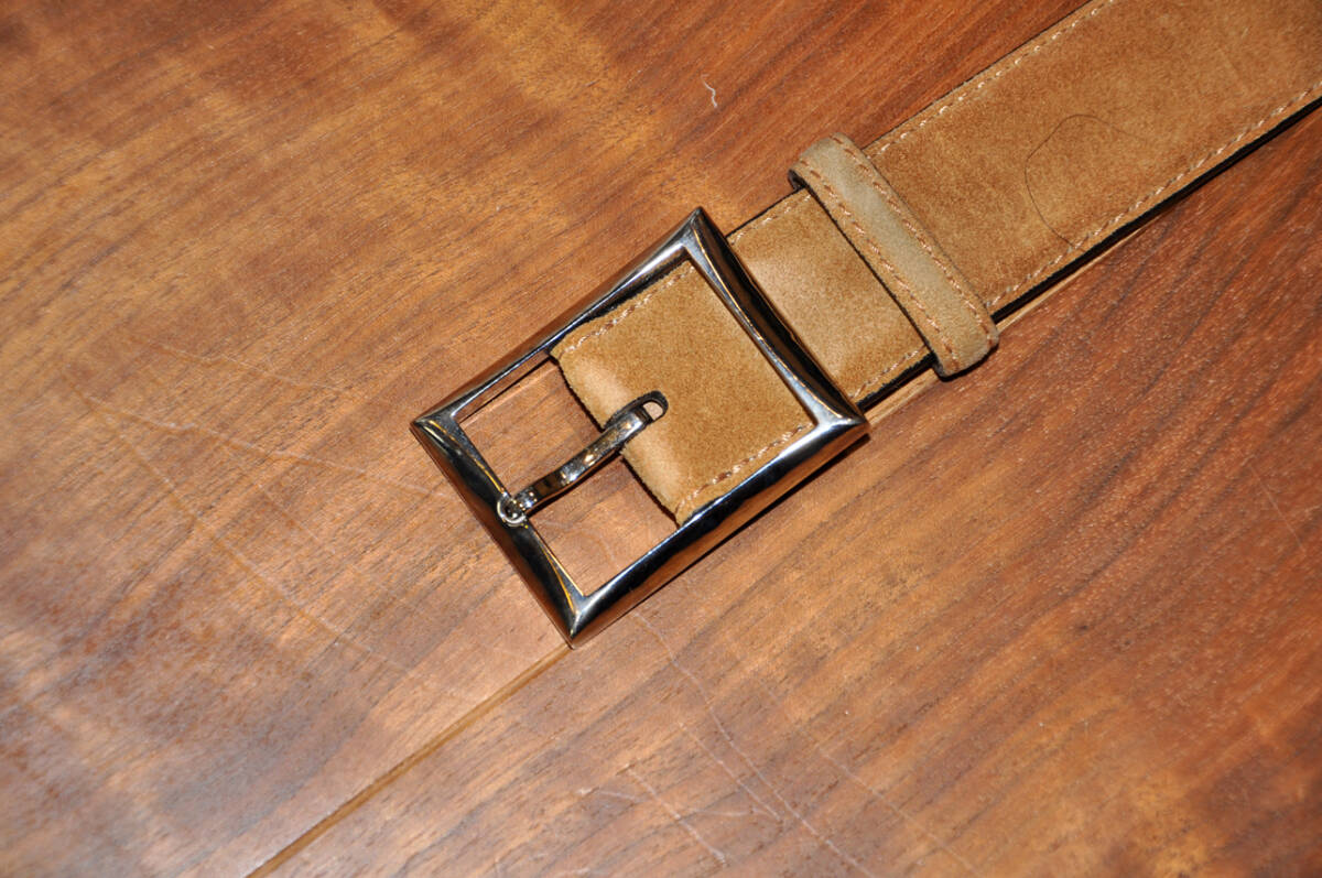 ベルルッティの定番バックルのタバコスエードのベルトになります。