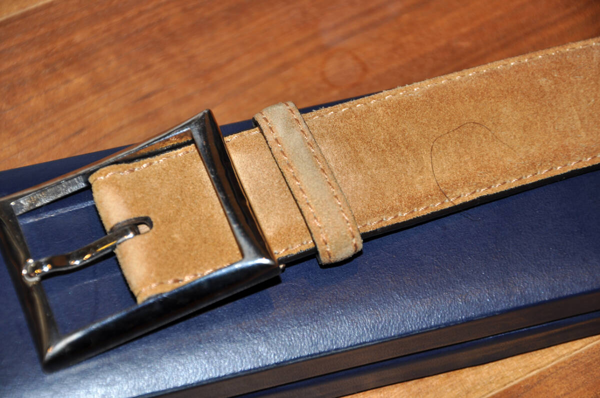 革靴メーカーとして誕生したベルルッティならではの上質なタバコスエードを使用し、定番のバックルを付けたシンプルで飽きがこないベルトです。