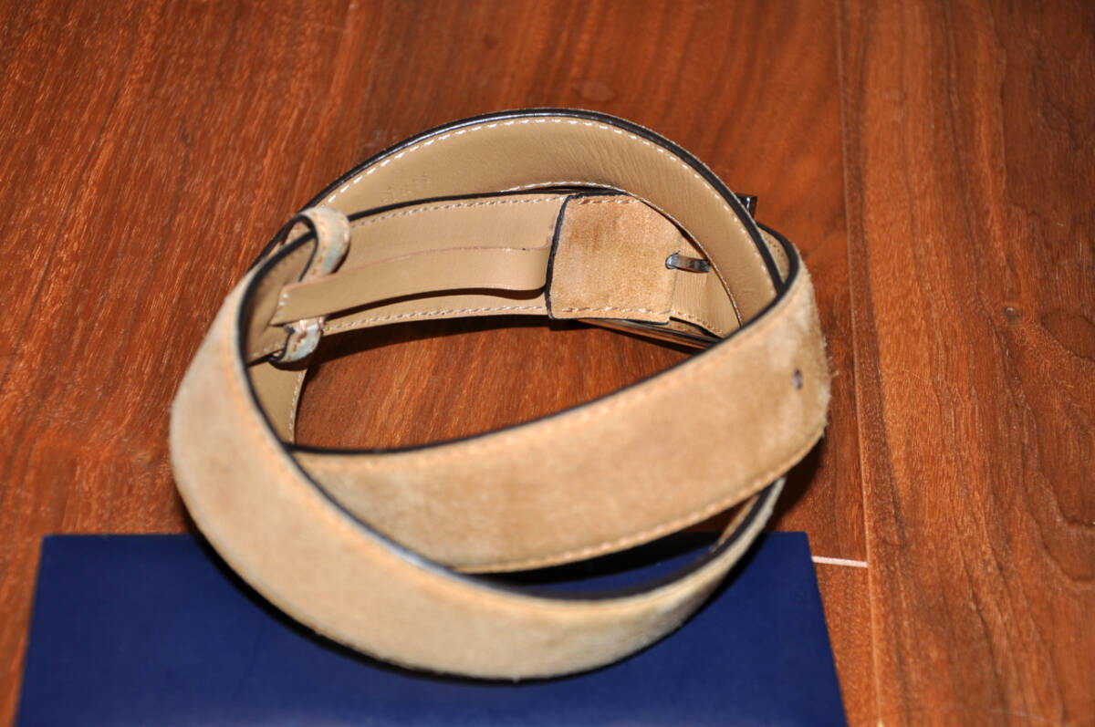 1度のみ着用極美品 定価10万程 ベルルッティ タバコスエード 全長102㎝ 中央穴 86㎝ ベルト ブラウン パティーヌ シルバー