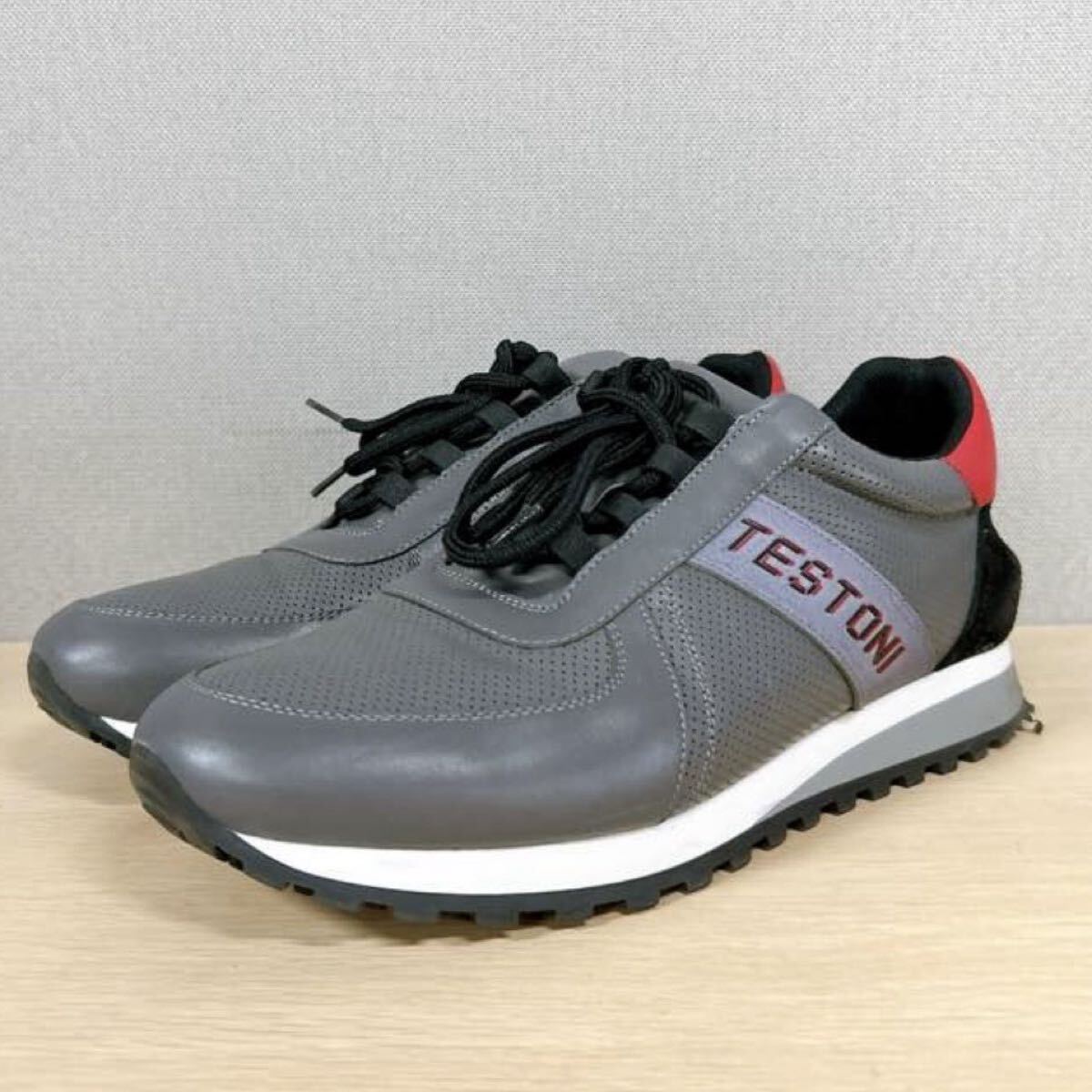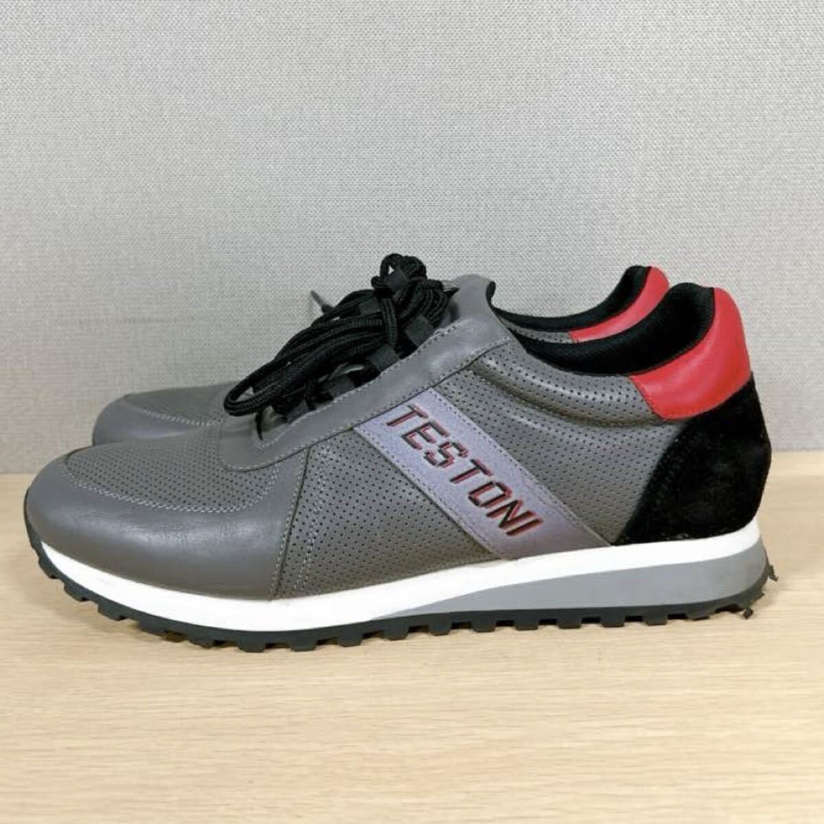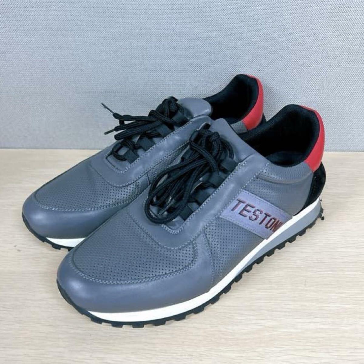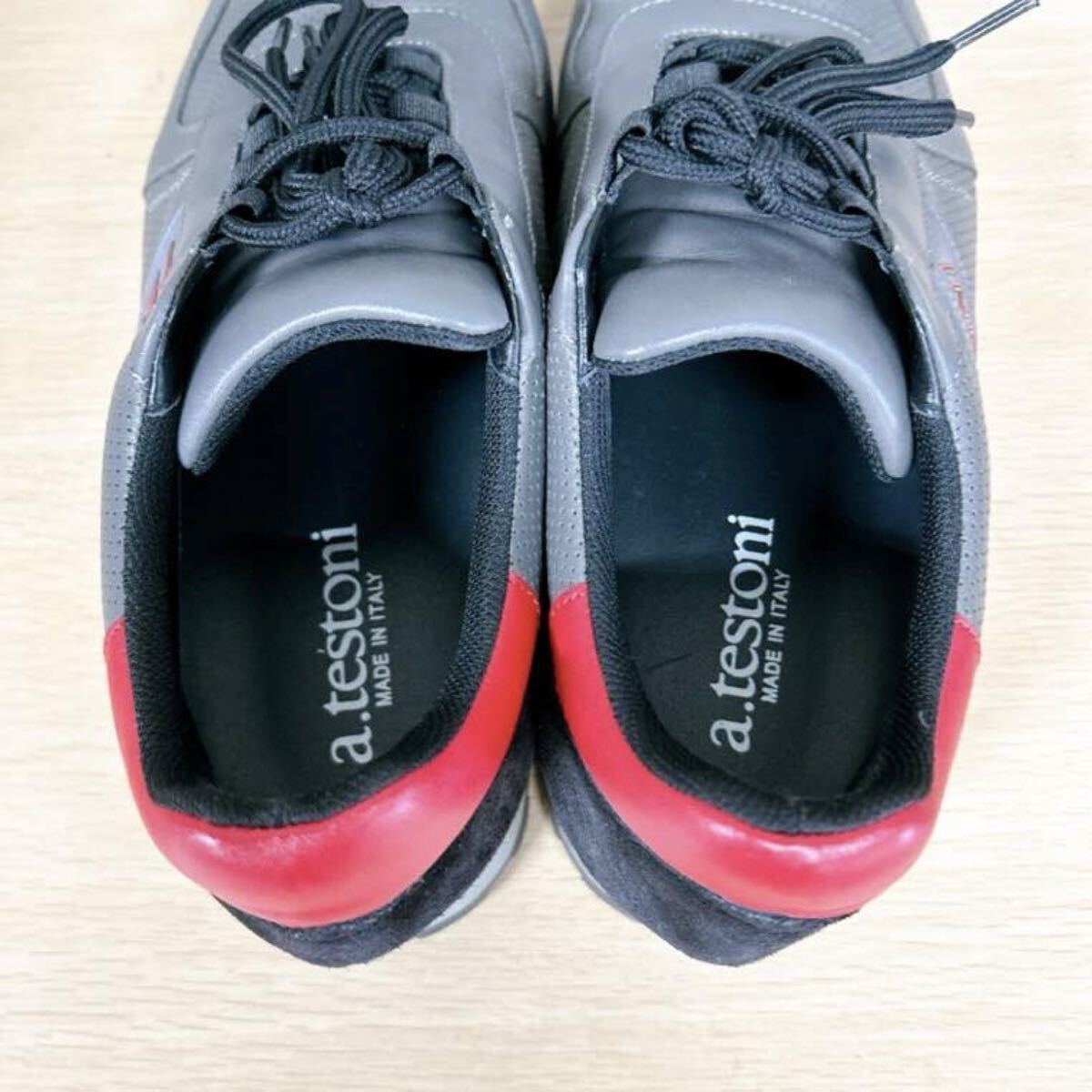 a.testoni ア.テストーニ バイカラー レザースニーカー メンズ グレー