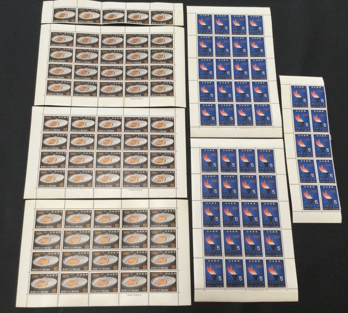 【大量】5・10円切手 5シート+15枚 第18回オリンピック競技大会記念 国立競技場 聖火台 1964年 記念切手 シート切手 まとめ取引歓迎