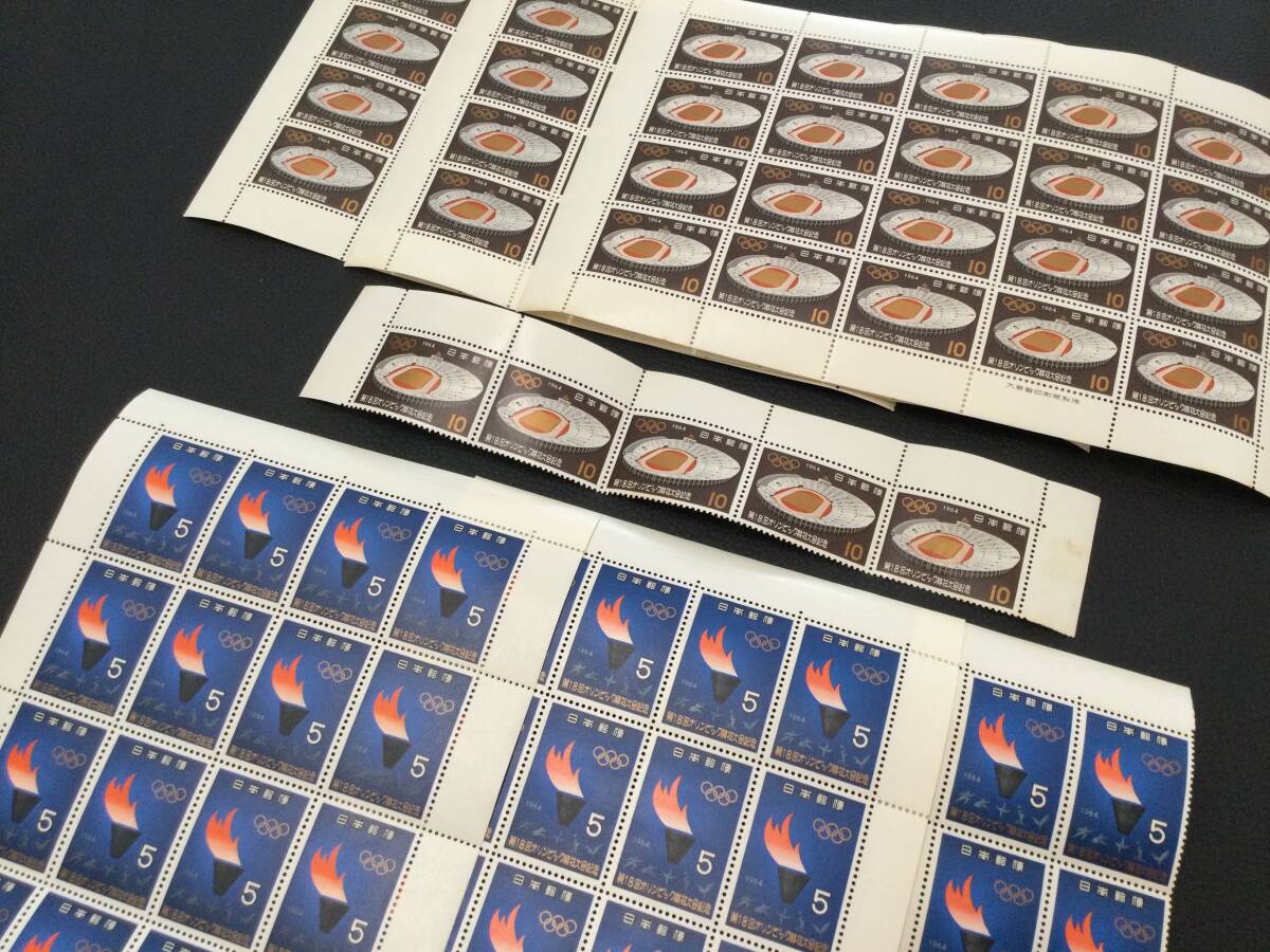 ・【大量】5・10円切手 5シート+15枚 第18回オリンピック競技大会記念 国立競技場 聖火台 1964年 記念切手 シート切手 まとめ取引歓迎です。