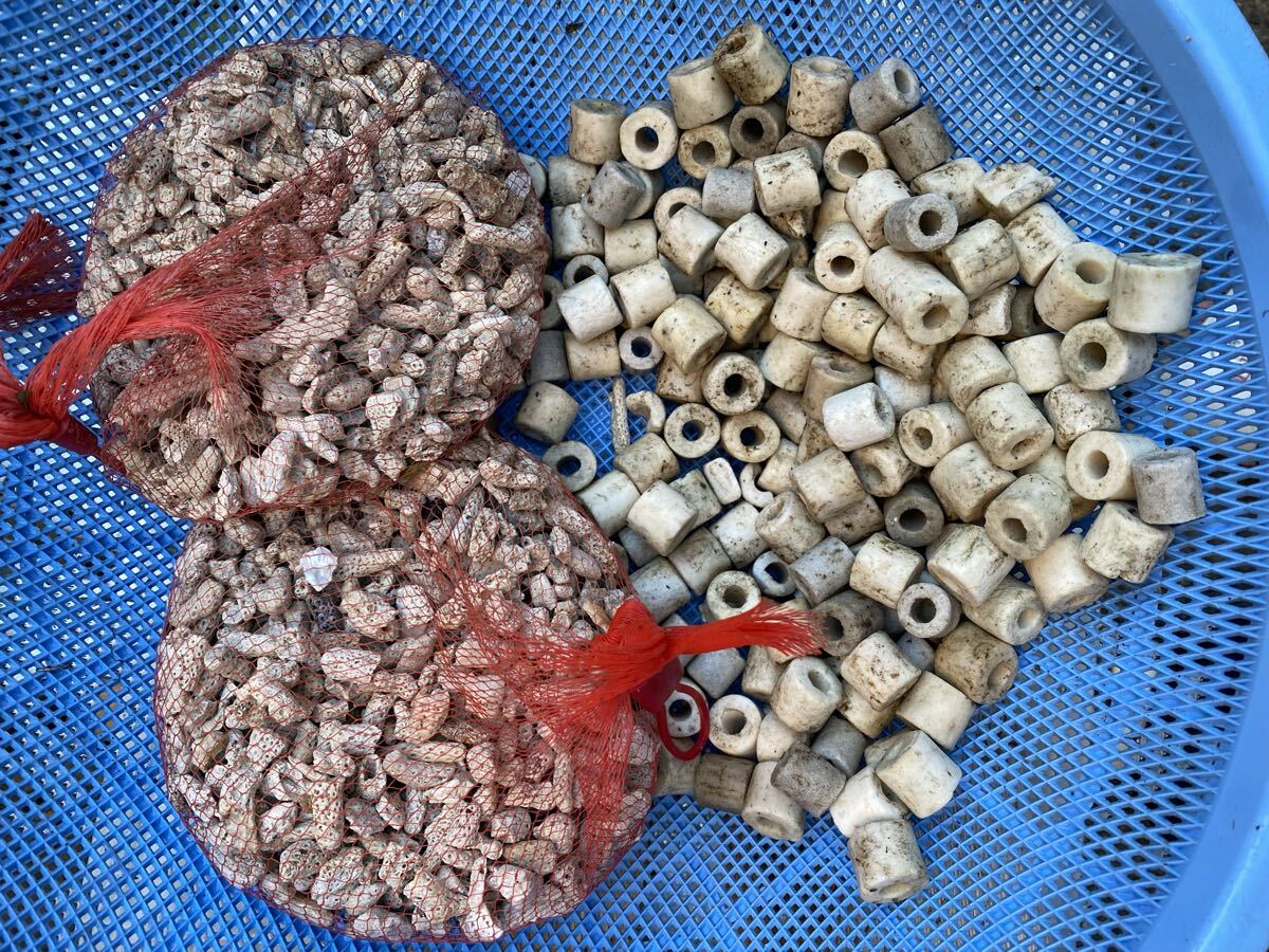 ろ材はサンゴ砂 リングろ材 合わせて5〜6キロほどあります