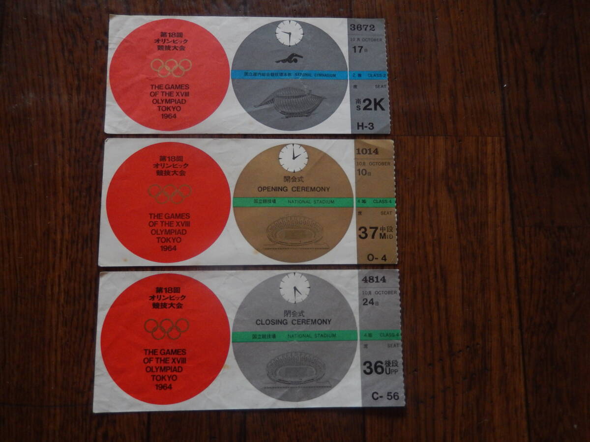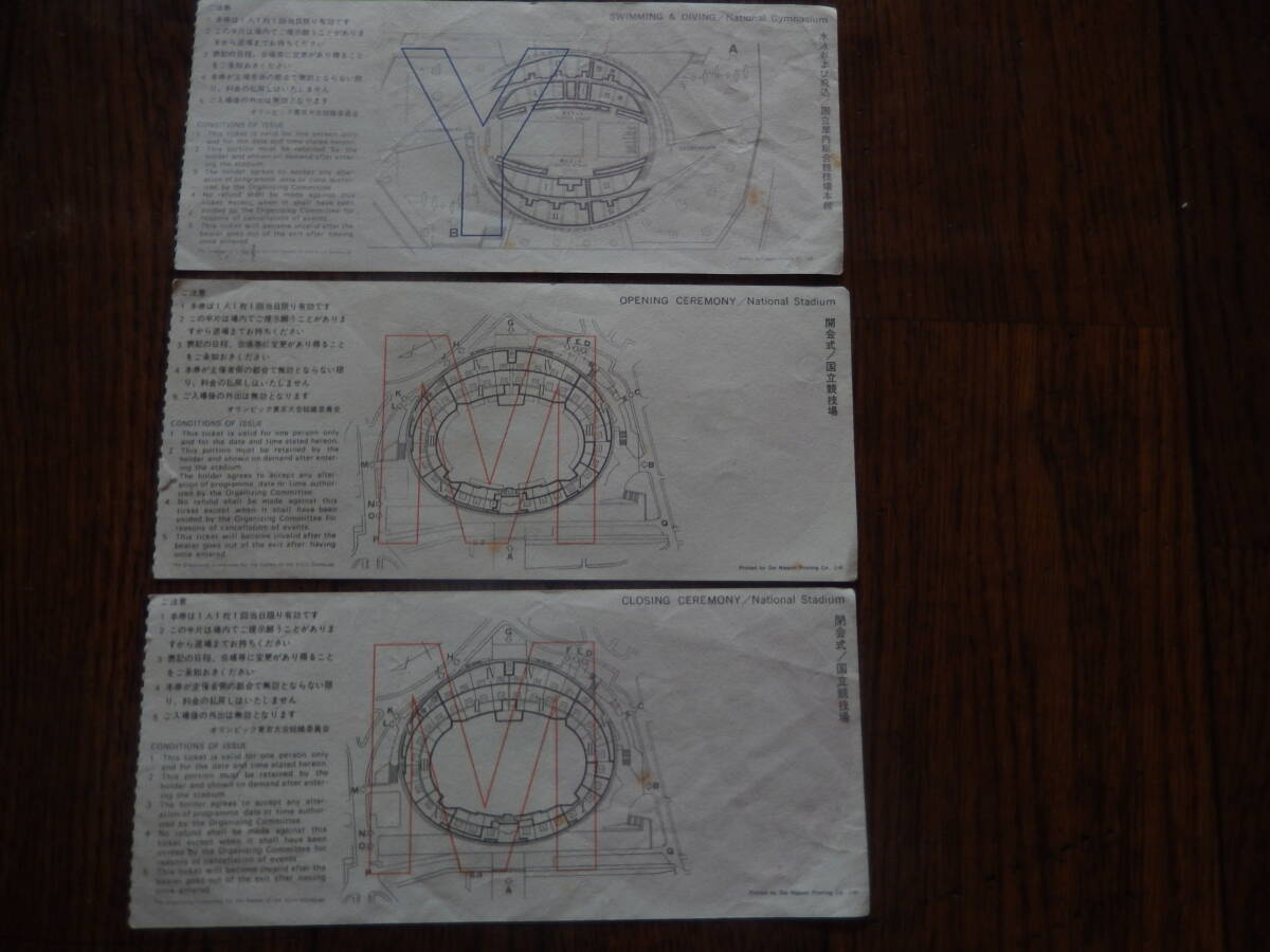 3点 東京オリンピックチケット 開会式 閉会式 水泳および飛込 第18回オリンピック競技大会 国立競技場 東京1964