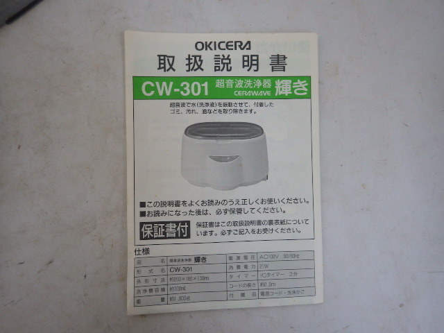| オキセラ 超音波洗浄機 輝き CW-301 AC100V 50/60Hz 21W 製品サイズ:幅20cm×奥行16cm×高さ13cm 電源コード長さ200cm 洗浄槽容量:700ml ICタイマー3分 取扱説明書付 超音波で水(洗浄液)を振動させて付着したゴミ・汚れ・油などを除去します 洗浄できる物:貴金属・メガネ・入れ歯・日曜小物等・・ | |