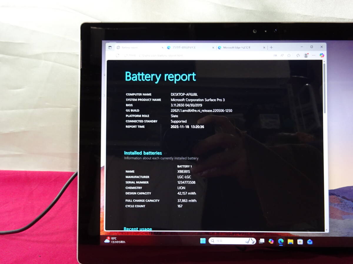 Microsoft Surface Pro 3 /Win11/Core i7/8GB/SSD 512GB /動作品 (251118-24)