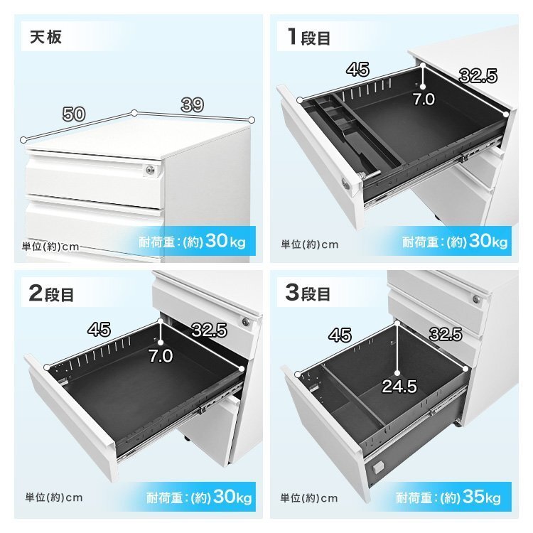 | 使いやすさ抜群のシンプルデザイン。 デスクに合わせやすいカラー! たっぷり収納できる大容量の収納容量! 下段はA4ファイルを収納可能。 全段フルオープンで奥の収納物も取り出しやすい! 安心のオールロック!鍵を掛けると全段ロックでセキュリティも万全です。 キャスター付きで移動ラクラク!デスクの下に入れても、デスク横に置いて作業スペースとしても使えます。 丈夫なスチール製。さらにマグネットも使えて使い方色々! ■商品コード:FKC001BK ■商品仕様 カラー:ブラック 素材:スチール 他 重量:(約)20kg 耐荷重:(約)30kg(天板・各段数) 《サイズ(約)》 全体:幅39×奥行50×高さ60cm 天板:幅39×奥行50cm ~引き出し内寸~ 1段目:幅32.5×奥行45×高さ7cm 2段目:幅32.5×奥行45×高さ7cm 3段目:幅32.5×奥行45×高さ24.5cm ■内容 本体、ペントレー ×1、鍵 ×2 ■注意事項 ・全ての引き出しを全開にしないでください。転倒の恐れがあります。 ・サイズは若干差異が生じる場合がございます。予めご了承下さい。 ・商品は、モニターによって色合いが異なって見える場合があります。 ・仕様・デザインは改良のため予告なく変更することがあります。 ■保証期間 7日間 ※商品到着後7日以内の初期不良・破損のみご対応させていただきます。 【新品未使用品です】 |