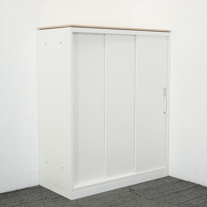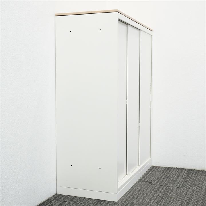 オカムラ レクトライン 3枚引戸書庫 天板付 W900 D400 H1115 中古