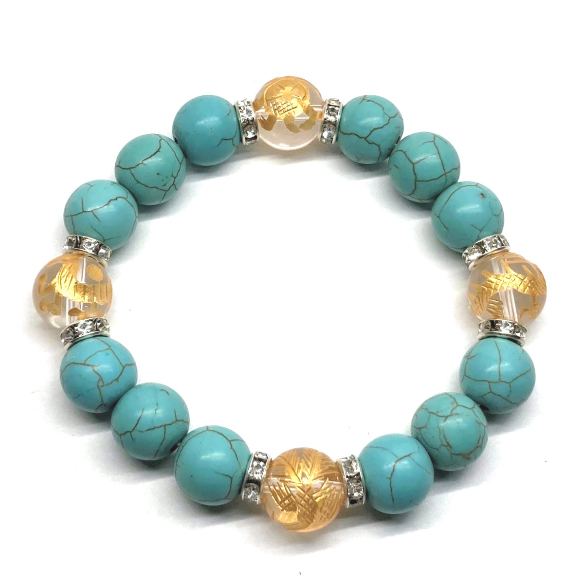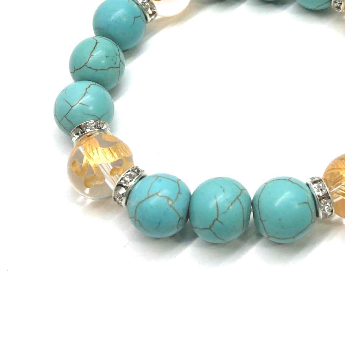 四神獣金彫水晶×ターコイズ 12mm パワーストーン ブレスレット青龍 白虎 玄武 朱雀 運気上昇 お守り 金運 健康運 四神獸 四神相応 S #2