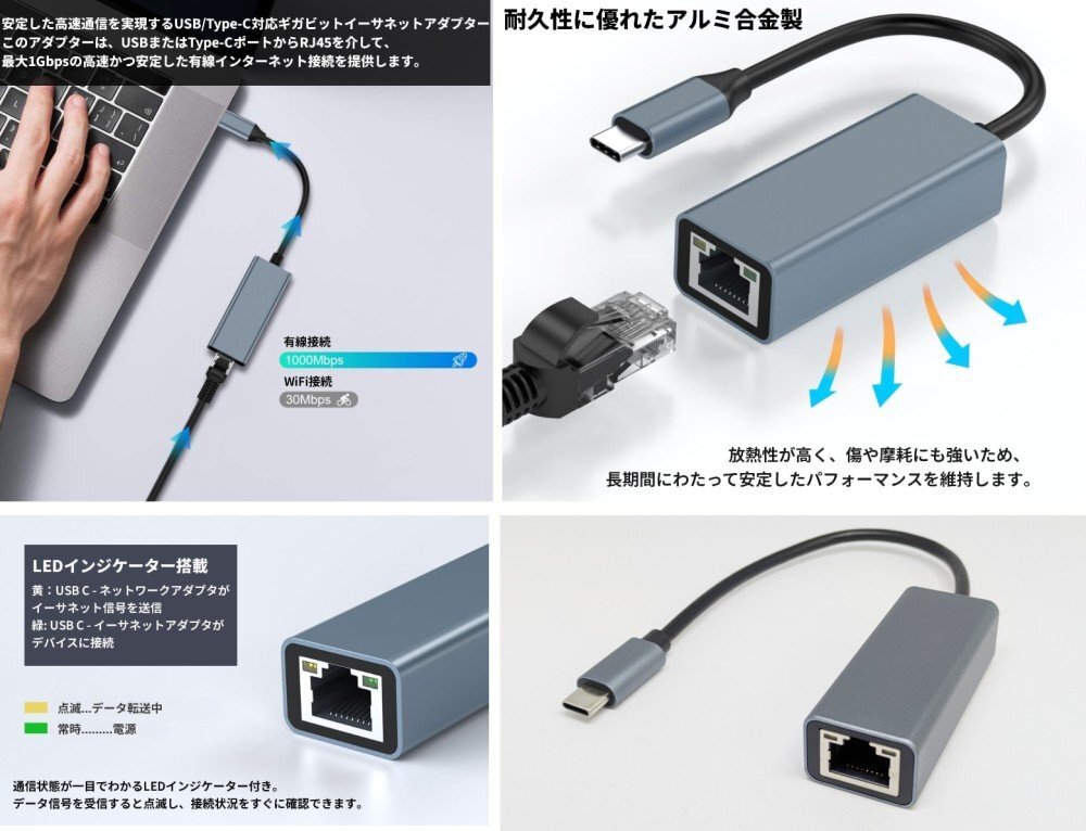 | USB Type-C 1000Mbps 有線LANアダプター |