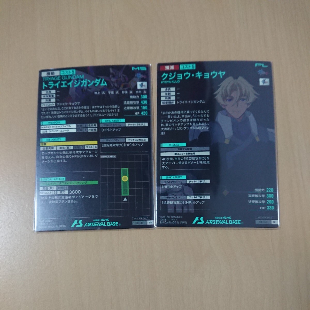 ガンダムアーセナルベース、プロモ、トライエイジガンダム & クジョウ・キョウヤの出品となります。未使用品です。パック開封後、スリーブに入れて保管していますが初期キズなど気になさる方はご遠慮ください。配送料金は梱包代込みで全国一律、120円とさせていただきます。他の出品との同梱は対応いたします。ノークレム、ノーリターンにてお願いいたします。