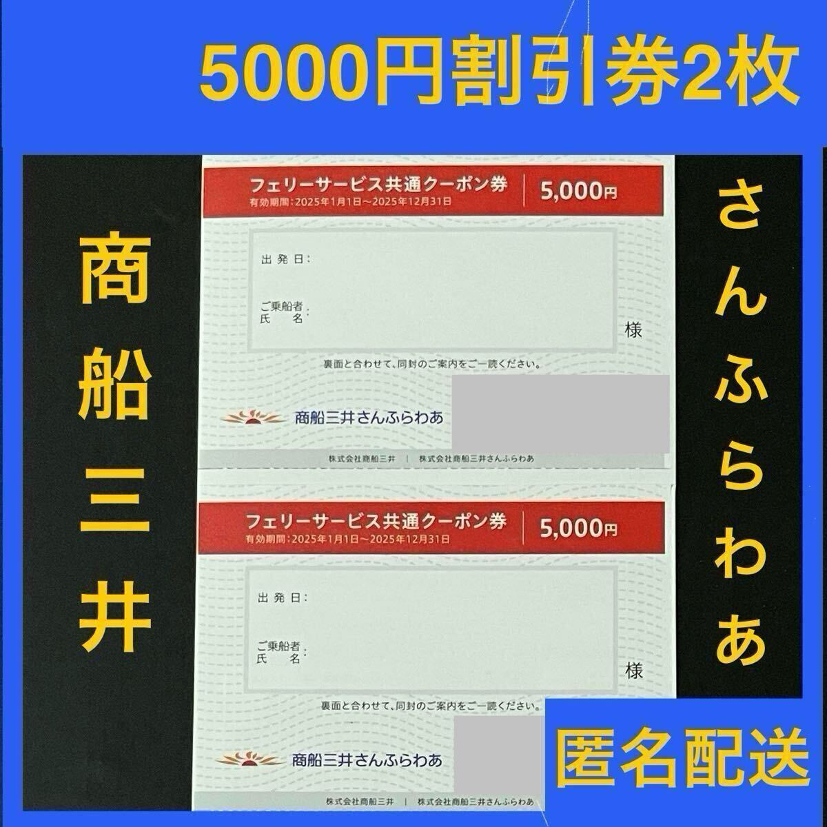 ●さんふらわあのフェリーサービスでご利用いただける共通クーポン5000円割引券×2枚セットです。