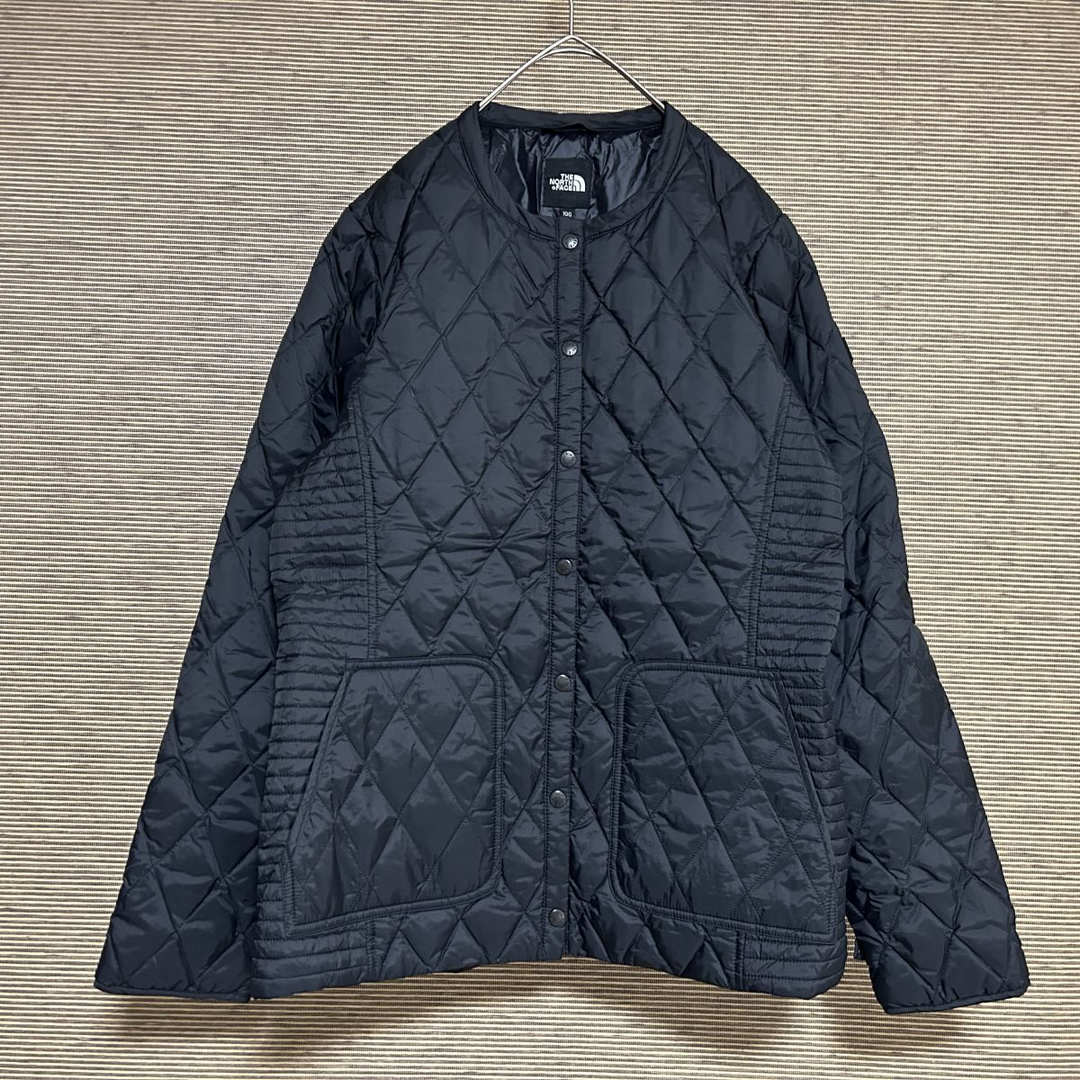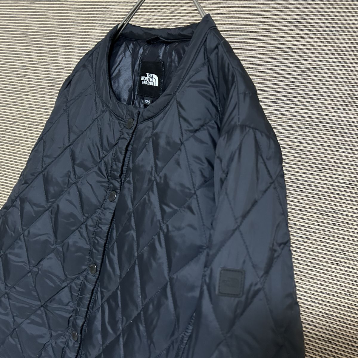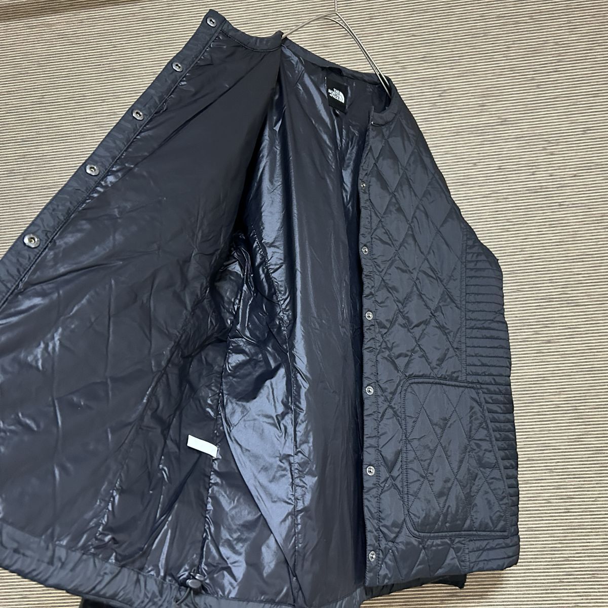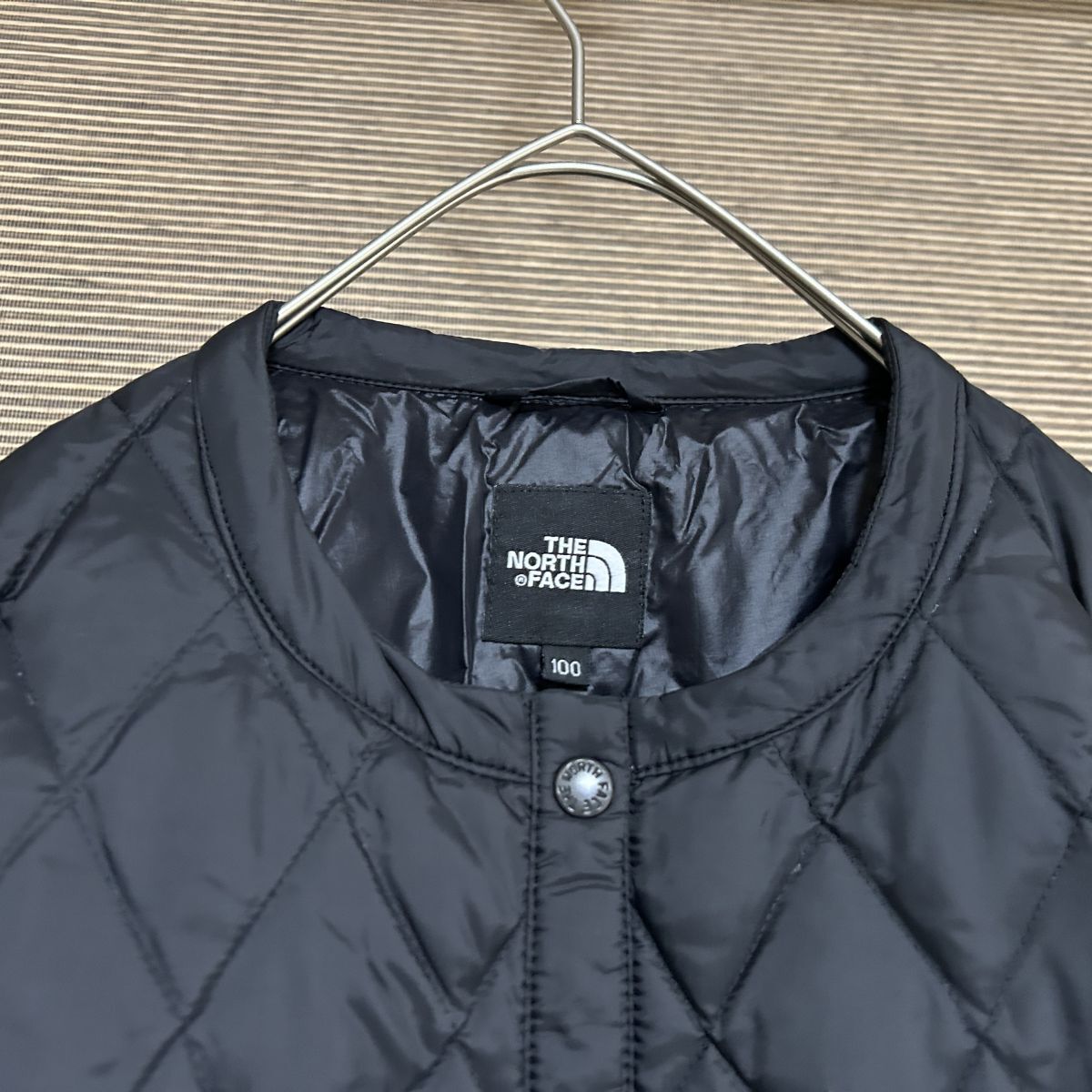 | 【ノースフェイス】中綿ジャケット 黒 肩ロゴ 襟なし ブラック ワンポイントE1 | |