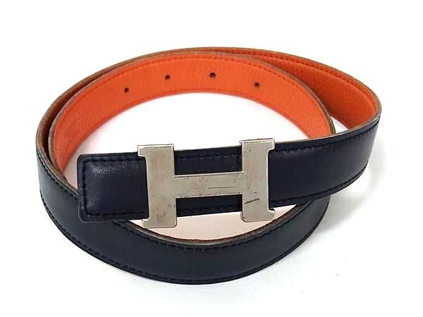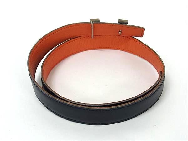 1円 HERMES エルメス コンスタンス ボックスカーフ×レザー シルバー金具 Hバックル ベルト サイズ 65 □D刻印 ネイビー系 FP7962