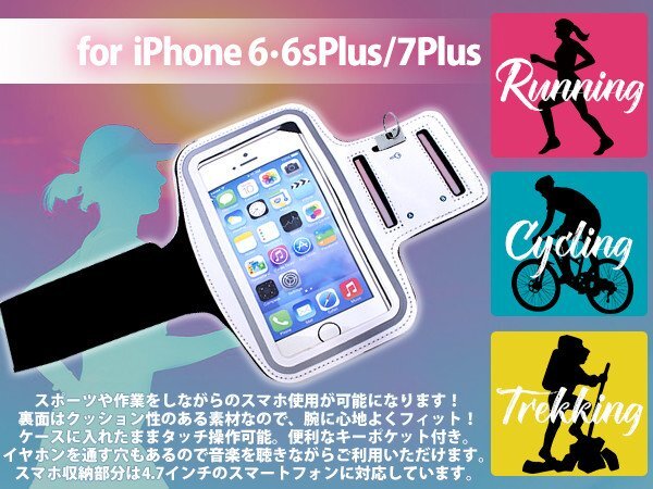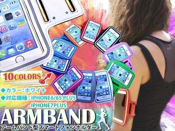 ランニング アームバンド アームポーチ キーポケット付き ケース 5インチ iPhone6Plus/iPhone7Plus スマホ ホワイト/白