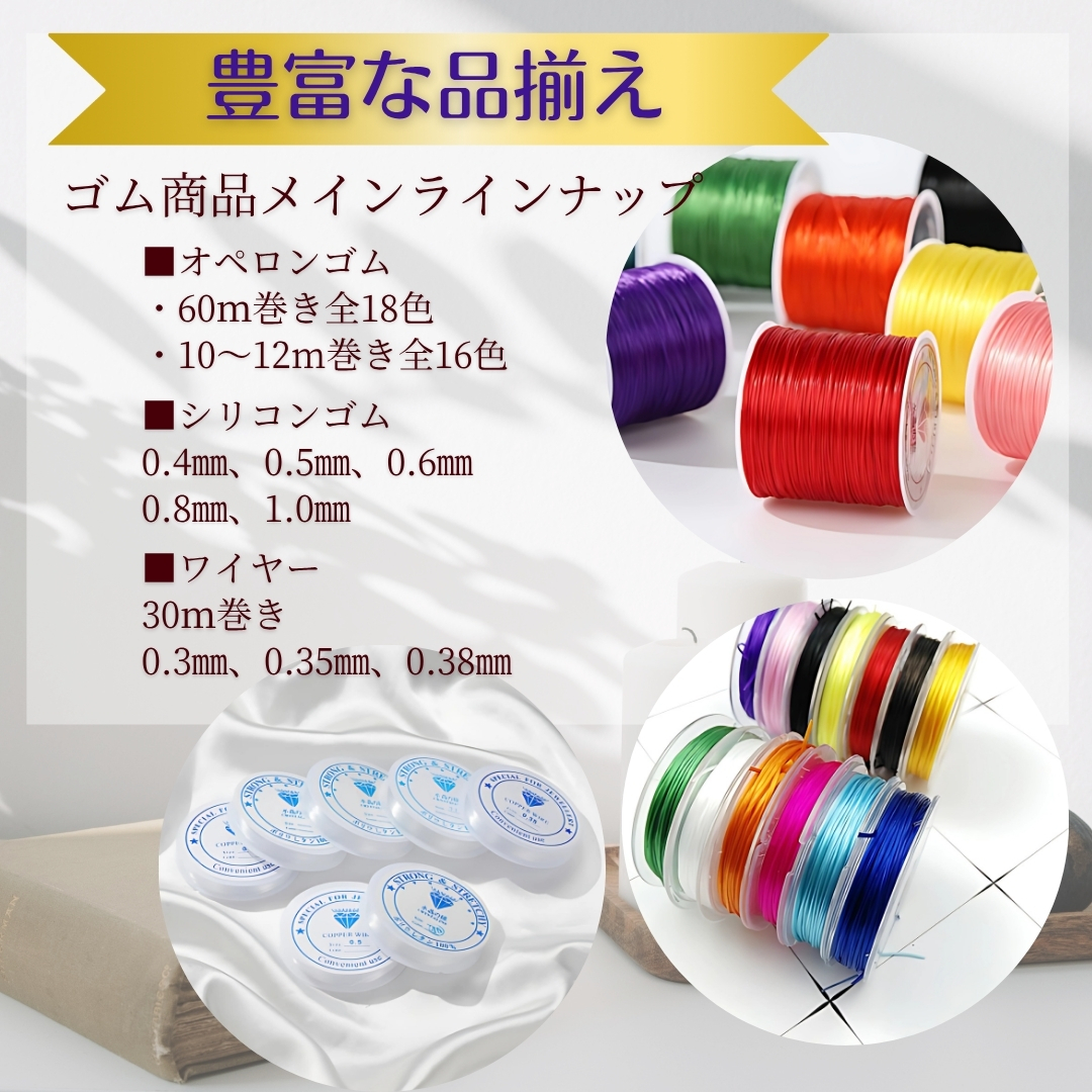 114-★オペロンゴム(水晶の線) ハンドメイド制作新品 □商品内容□ [FC114-] オペロンゴム 0.7mm 60m 材質: ポリウレタン100% カラー: 掲載写真1枚目と同じ 個数: 1個 通しワイヤー 2本 ----- ★生産から販売までサイクルが速く、劣化のない良い状態でお届けが可能です。発送梱包前に規格(巻き量)検品を行っております。 カラー、仕入れロットにより巻きスプールの変更がある場合がございます。 ★各カラーの在庫について 在庫切れのカラーがある場合、商品説明より下部の【追記情報】に記載していますのでご確認ください。追記情報がない場合は、在庫有りとなります。 (少し余裕をもって記載しておりますが、稀に注文数が多く、記載が追い付かない場合があります) ★カラーの変更・ご指定について ※掲載写真3枚目のカラー一覧表からお選びいただき、【ご購入後、取引メッセージにカラー番号をご連絡ください】 ★即日~翌日発送となります。 発送梱包後のカラー変更はお受けできない場合がございます。 カラーのご指定はお早めにお願い致します。 ※他商品と併せて"まとめて取引"をご利用可能。 取引の方法はヘルプページでご確認ください。 (1商品分の送料でまとめて発送。送料がお得に) 各個数セット商品も出品中です。 当店のオークション出品一覧からお選びください♪ | ||