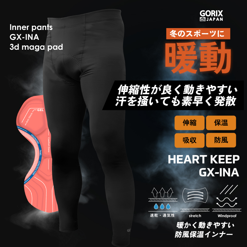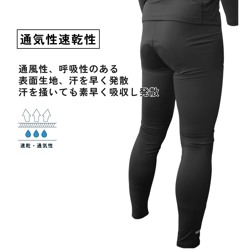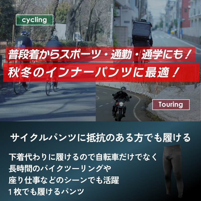 [極厚パッド]3Dメガパッド付きの防寒用インナーパンツ 冬のインナーサイクルパンツにパッドが付いた新しいパンツです。 ロードバイクやクロスバイク、マウンテンバイクなどのツーリングやサイクリング時におすすめ。 冬用のインナーパンツは少ないのでサイクルパンツに抵抗がある方にも 冬でもサイクリングを楽しんでいただけます。 下着代わりになるのでバイクのツーリングや長時間の座り仕事や作業時など普段使いにもおすすめ。 パッドは超極厚シリーズの3Dメガパッド。クッション性に優れお尻の痛みを軽減します。 [カジュアルに履ける] サイクルパンツに抵抗のある方でも履ける! 冬の厳しい寒さもインナーに着用する事で防寒対策にもなります。 普段着のズボンの下や短パンと合わせたり。 下着代わりに履けるので自転車だけでなく長時間のバイクツーリングや 座り仕事などのシーンでも活躍できます。 [保温性] 内側は保温性を高める裏起毛素材で肌ざわりが良く 柔らかく気持ちが良い。 また肌がチクチクしない縫合技術。 [伸縮性・弾力性] スパンデックスを使用しているので伸縮性(ストレッチ性)がとても優れているので着用していても 身体にフィットするので激しい運動でも動きにあわせて伸縮します。 [通気性速乾性] 通風性、呼吸性のある表面生地、汗を早く発散でき、汗を掻いても素早く吸収し発散させます。 汗冷えを軽減。 [防風] 冷たい風をしっかりブロック。 風を受けて体が冷えるのを軽減します。 [超極厚パッド] 人体工学に基づき、お尻、会陰部に衝撃吸収の分厚い約2cmシリコンジェル内蔵パッドを配置 真ん中には空気の流れを誘導する溝デザイン 両側の溝は人体構造に合わせたフィット感でペダリングの邪魔にならない。 [お尻の痛みを軽減] サドルの上に長時間座り走り続けるとお尻や股間が圧迫されて痛みがでて辛い。 楽しいはずのサイクリングも残念な気持ちに。 超極厚3Dメガパッドでこれらの症状を起こりにくくします。 [ハイウエスト] 長めのウェスト弾力バンド。 サイクリング時にも締め付けすぎず快適に。 素材パンツ:90% polyester, 10% spandex パッド:シリコンジェル、スポンジ(密度28g/cm3) カラーブラック MEGAパッド厚みMAX 2cm、MIN 0.25cm 長さ37cm, 幅12-21cm ※秋、冬向き、サイクリング時使用、保温性のあるインナーパンツです。 《ご注意》 ・商品は入荷によりキズがある場合があります。 その場合、保証対象外になりますのでご了承お願い致します。 ・ディスプレイ環境により実物と色が異なる場合が有ります。 ・入荷時期により予告無く一部仕様変更する場合が有ります。 | |
