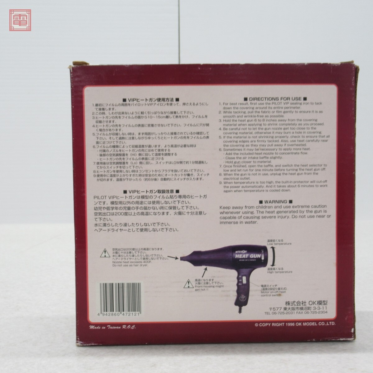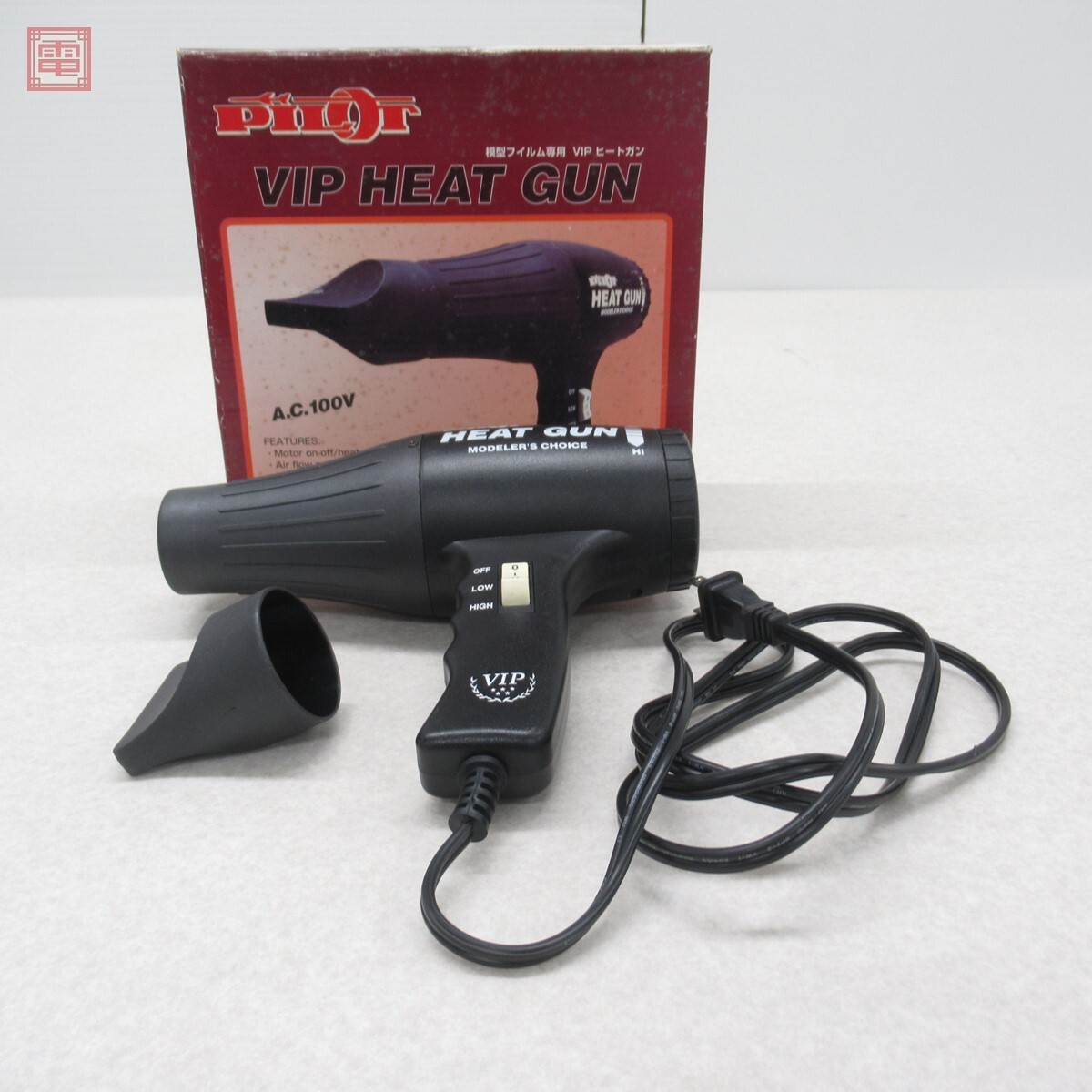 PILOT VIP HEAT GUN 模型フィルム専用VIPヒートガン 通電確認済 ■こちらの商品は【通電以外は未チェック】のため、どの様な不具合が生じましても当店では交換・返金・返品等の対応はできません。 ■ご理解ご納得いただける方のみご入札をお願いいたします。 ■外箱にスレ、汚れ、イタミがあります。 ■本体にスレ、キズ、汚れがあります。 ■写真のものが全てです。付属物の有無や状態については写真からご判断ください。 ■付属物については細かいチェックはしておりませんので、万が一、欠品があったり余計な物が入っていたとしてもご了承ください。 ■商品到着後、当店の保証期間中は、商品及び箱や取説、付属品などを1つでも廃棄や破損をしないようにお願い致します。廃棄や破損をした場合、商品に問題があった場合でも対応や返金などの対処ができなくなります。 ■商品によりますが、発売されてから10年以上経過している中古品である事をご理解頂いた上でご入札をお願い致します。なお、新品や美品、また特記事項がある場合は別途明記します。 | |||