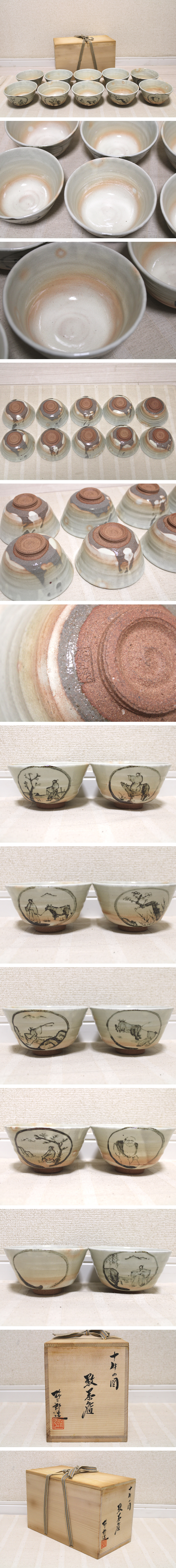 【茶道具】弥三郎 造「十牛の図 数茶碗10客」共箱 北川宏幸 抹茶碗 割烹 和食 料亭 懐石