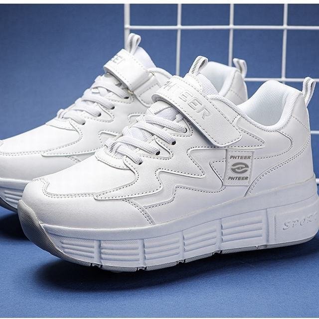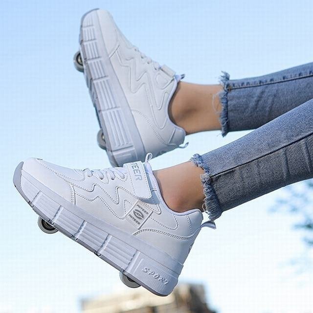 インラインスケート子供用ローラースケート子供普通の子供用運動靴として履けるキッズスニーカーベルクロ&シューレースローラースケート靴 【アッパー】:合成繊維 【インナー素材】:メッシュ 【ソール】:ゴム 【クローズ】:ベルクロ/レース 【ホイールタイプ】: 2輪 【ヒールの高さ】:2 cm 【デザイン】: アウトソールの隠し格納式ホイール。アウトソールは高品質のゴムでできており、耐久性があり、滑りません。ボタンを押すと、ホイールがポップアップします。ボタンを押し続けると、ホイールが押し戻されてロックされます。 かかとのボタンからローラーをポップアップして非表示にすることができます。ローラースケートと通常のスポーツシューズの両方を使用できます。これらのスケートはまた非常に快適でスタイリッシュです。