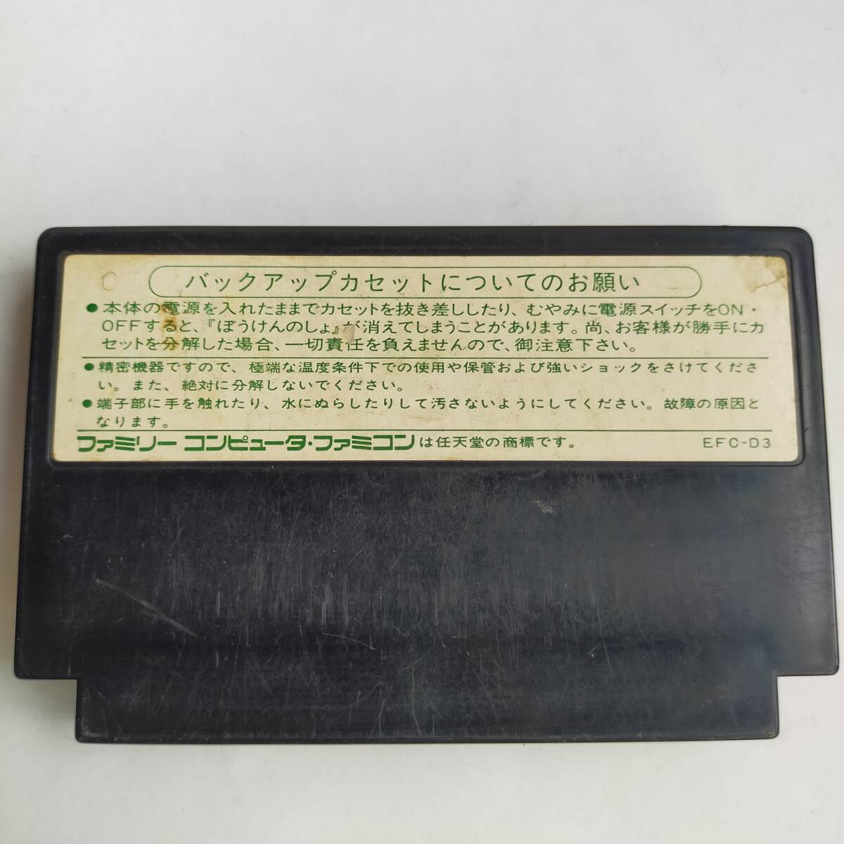 • 端子の清掃を行い、正規のファミコン本体にて、タイトル画面まで起動確認済みです。