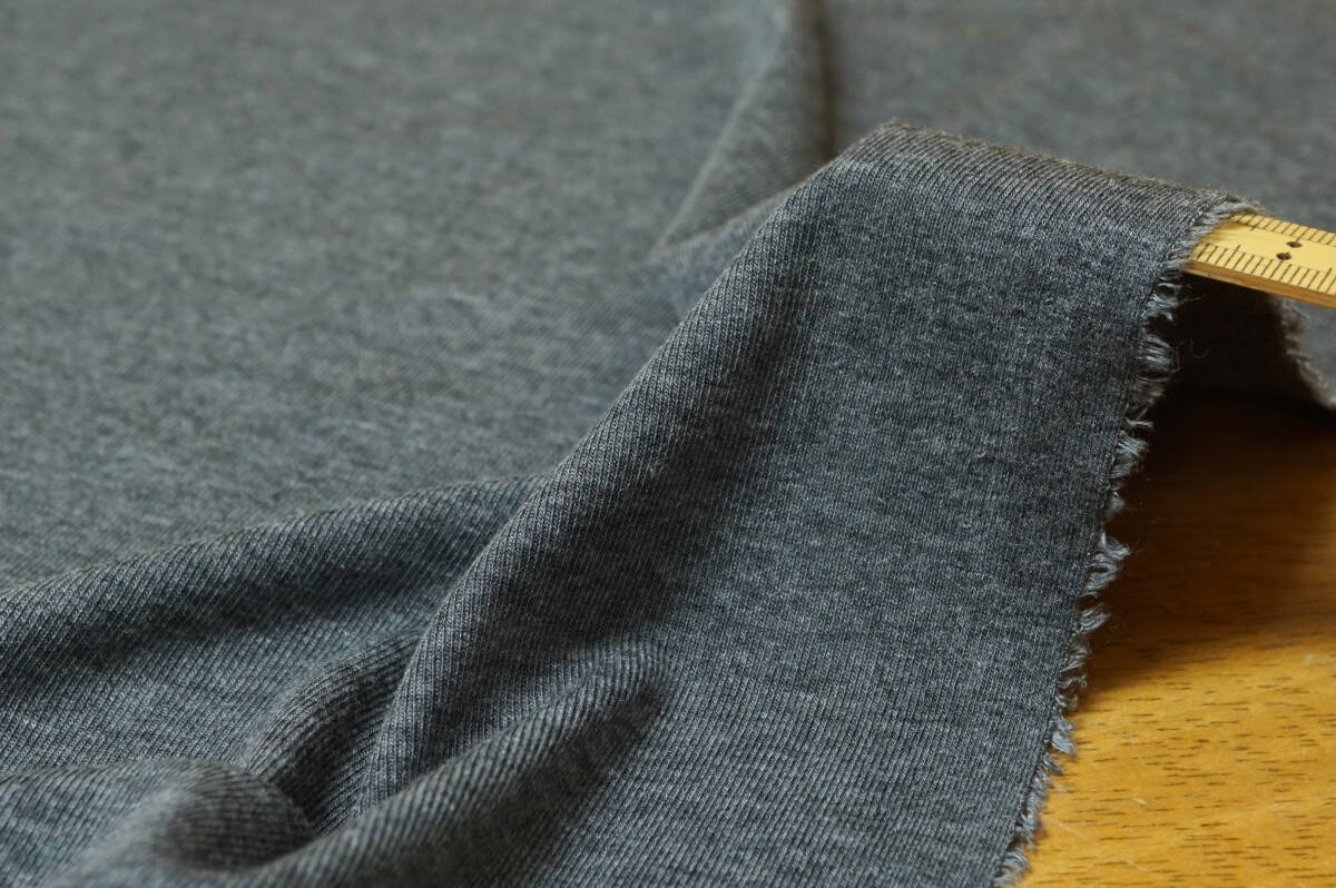 リヨセル93% ポリウレタン7%、厚さはやや薄手、グンと伸びる2way伸縮仕様で、くったり落ち感のある柔らかな風合いで、しっとり優しい肌触りでございます。