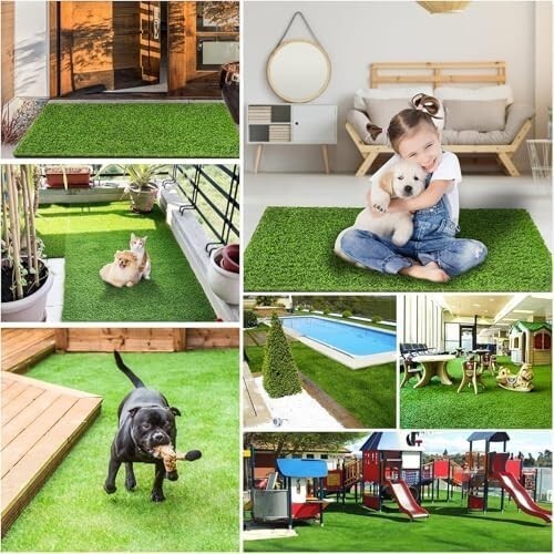 薄型で使いやすく多用途に対応:芝丈約1cmのショートパイル仕様で、見た目はすっきりとした印象。厚みを抑えているため、ドアの開閉や家具の設置にも干渉しにくく、ストレスなく使用できます。バルコニー、屋上、ペットの遊び場、室内のプレイスペースなど、さまざまなシーンに幅広く対応します。