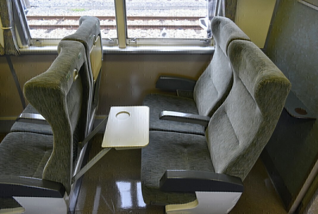 ◎掲載画像①が、販売中のテーブルと同型のテーブルが使用されている185系200番台 B6編成の参考画像です。