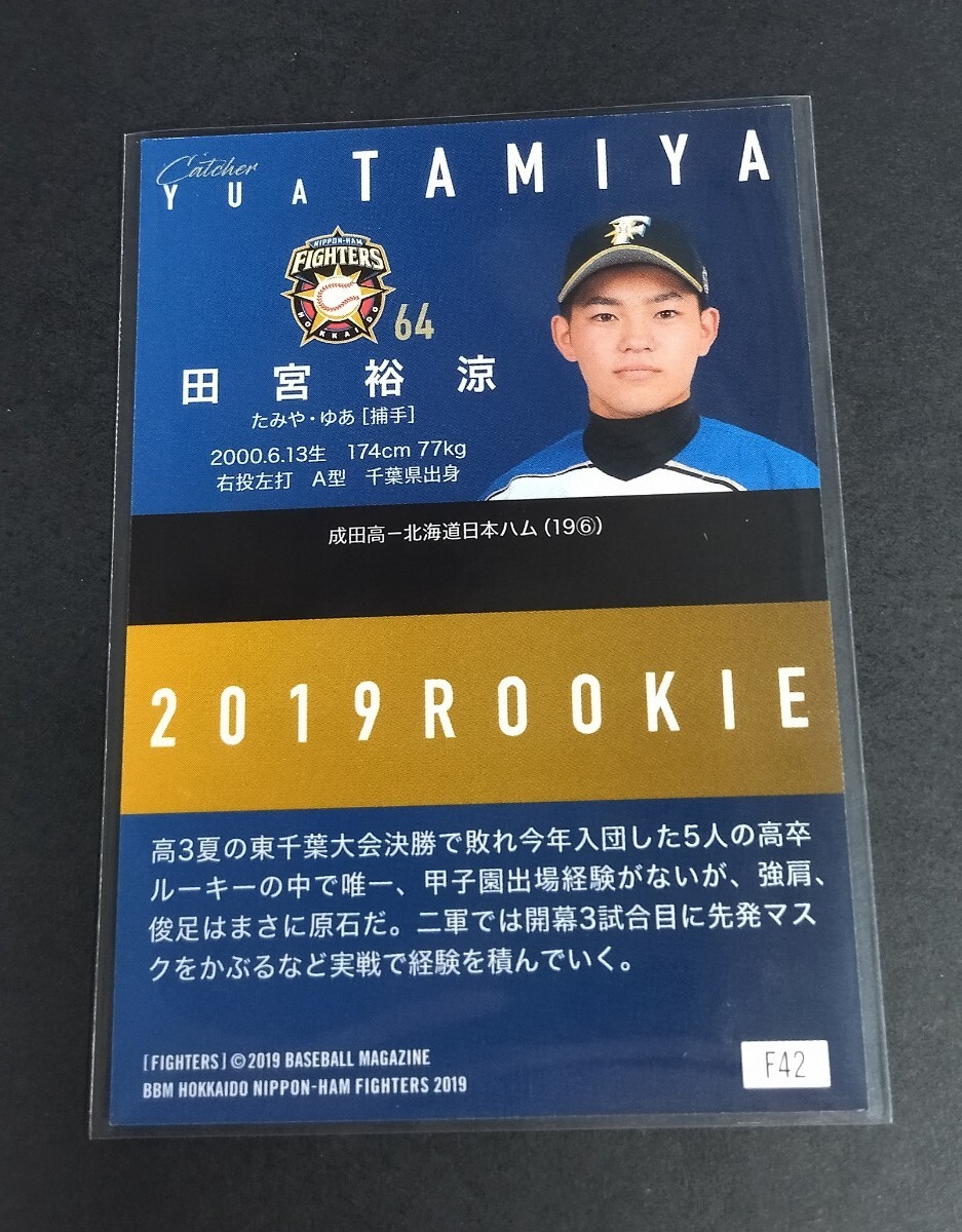 2019年BBM ファイターズ 田宮裕涼(日本ハム)ルーキーカード!No,F42。