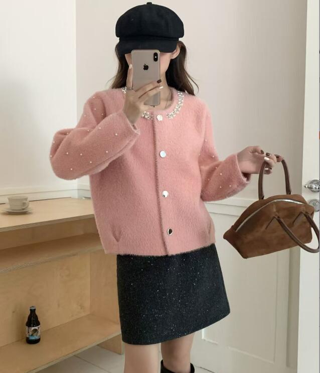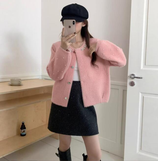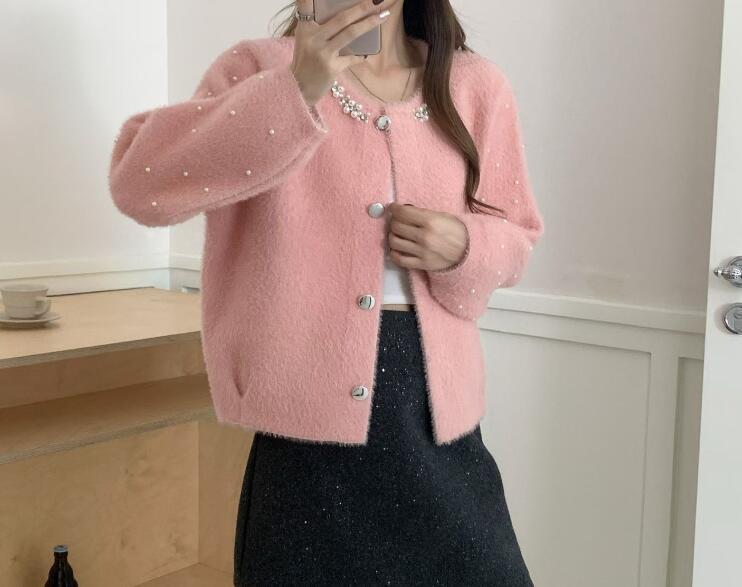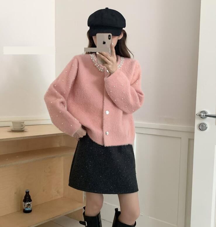新入荷ニット セーター カーディガン 羽織物 アウター チュニック オシャレ フリーサイズ ビーズ付き