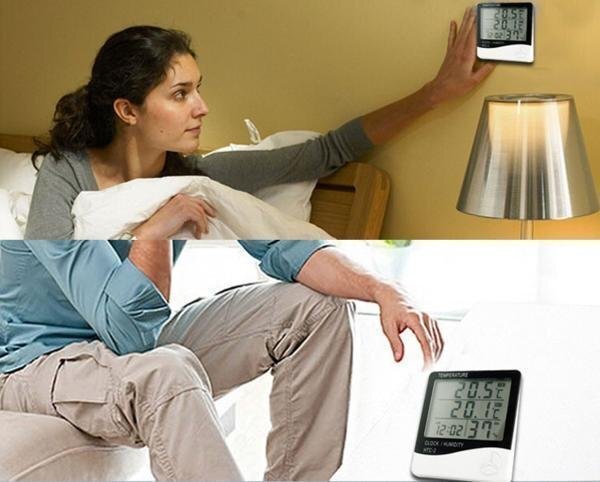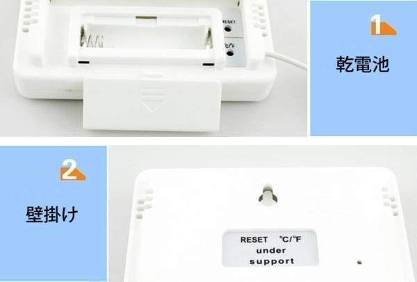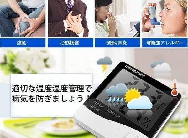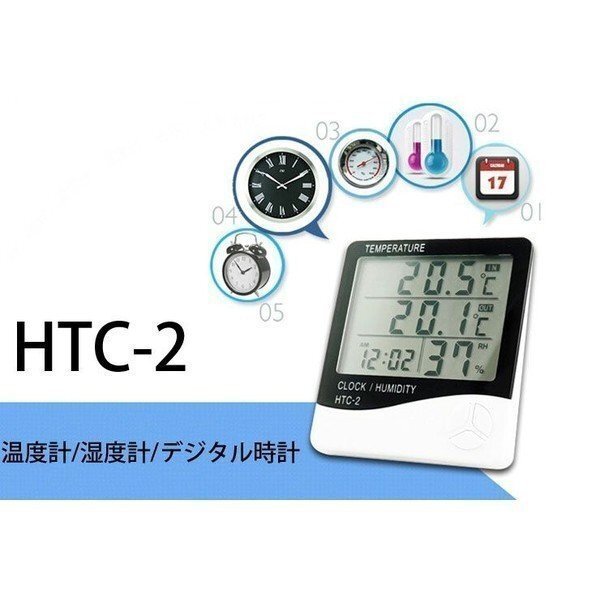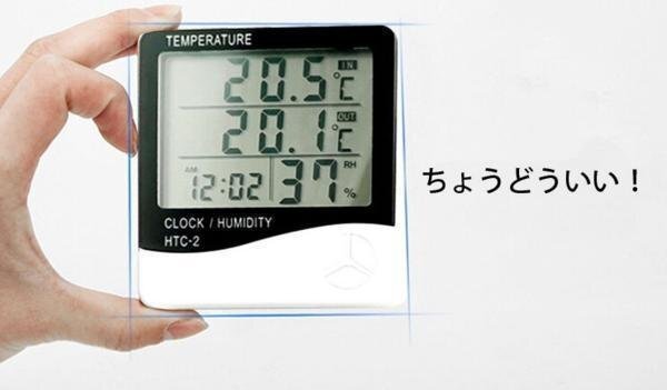 ◆液晶デジタル温湿度計 室内外2ヶ所の温度を同時計測 時計表示 アラーム HTC-2