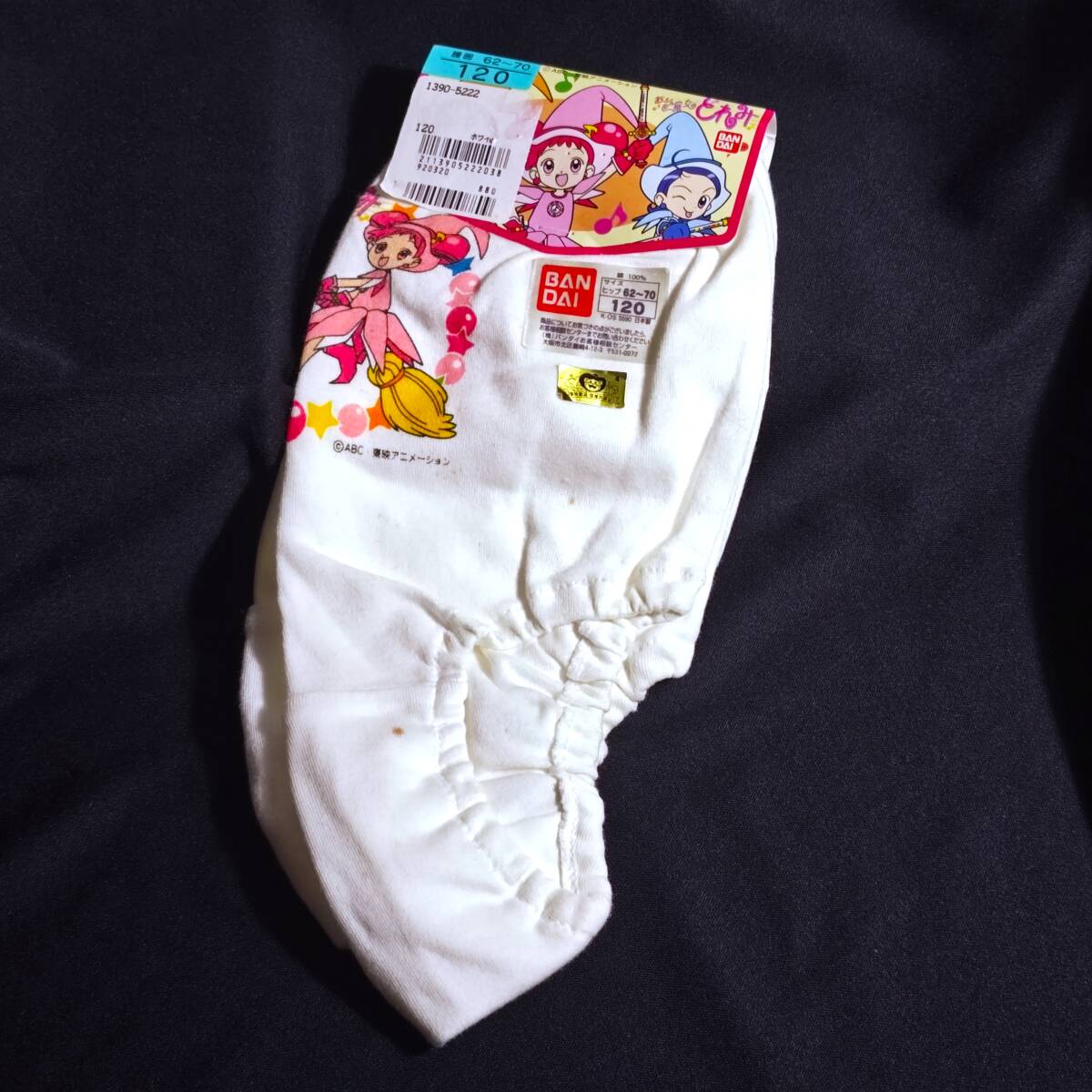 TVアニメ「おジャ魔女どれみ」の女児ショーツ 2枚組 サイズは120cmです。 新品・未使用の商品ですが、倉庫等での保管中の劣化等による一部シミ等がありますので神経質な方は見送って頂くのが宜しいかと存じます。 またお子様に着用させる前には洗濯して頂くことをおすすめします。 |