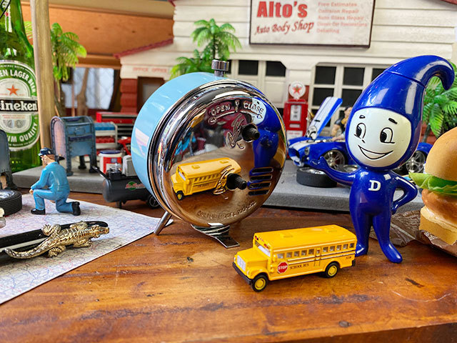 ボディは小振りなのでちょっとした空きスペースでも置けちゃうのも魅力。デスククロックにしても格好良くシーンを盛り上げてくれます。