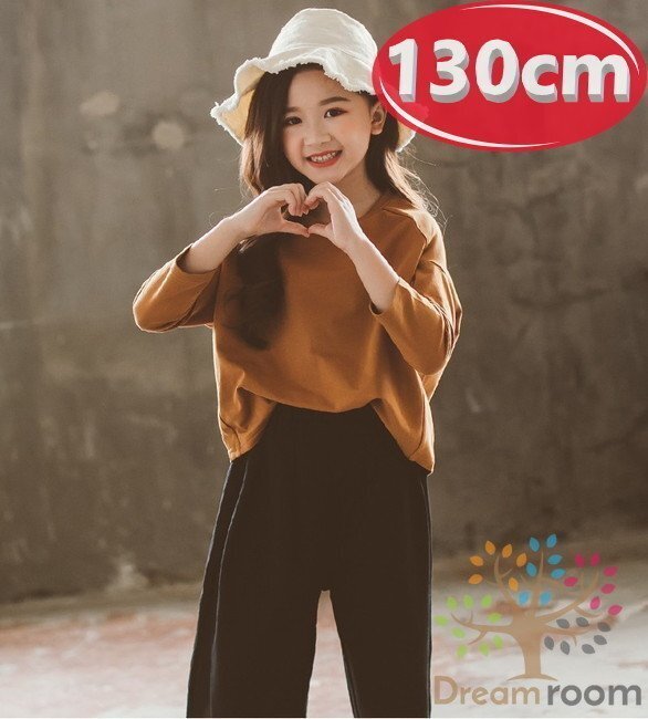 1スタ☆【130cm】ゆるかわ ドルマントップス&ワイドパンツ ガウチョパンツ セットアップ 子供服 女の子 韓国子供服