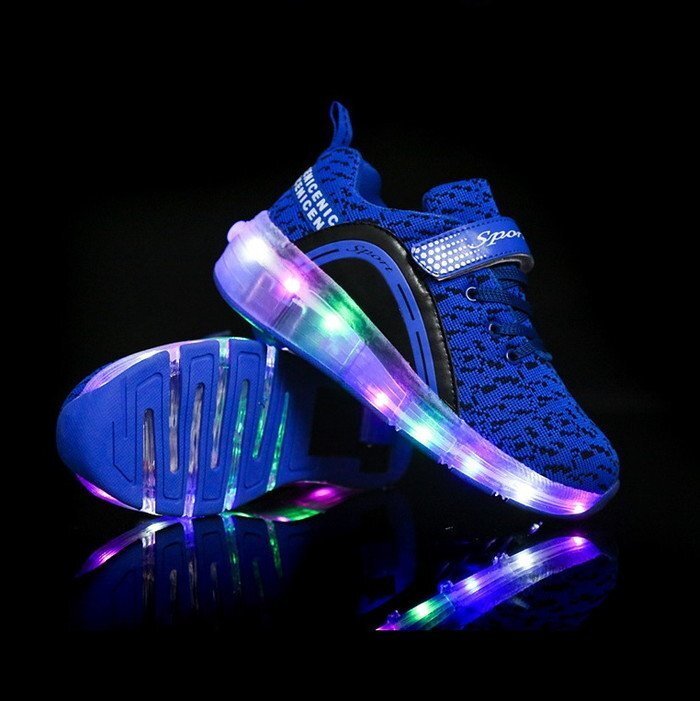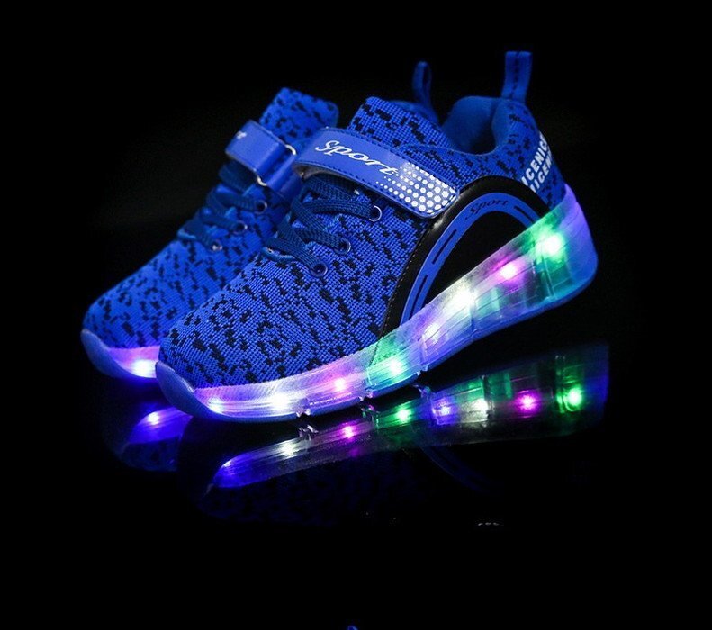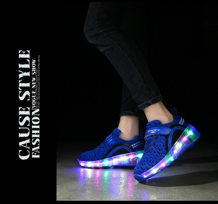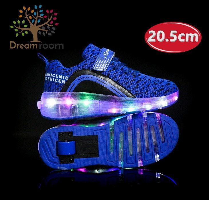 1スタ☆光る☆LED ライトアップスニーカー&ローラーシューズ 一体型 【K-166ブルー 20.5cm】夜間 スケート靴 反射材 ジョギング 自転車