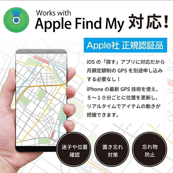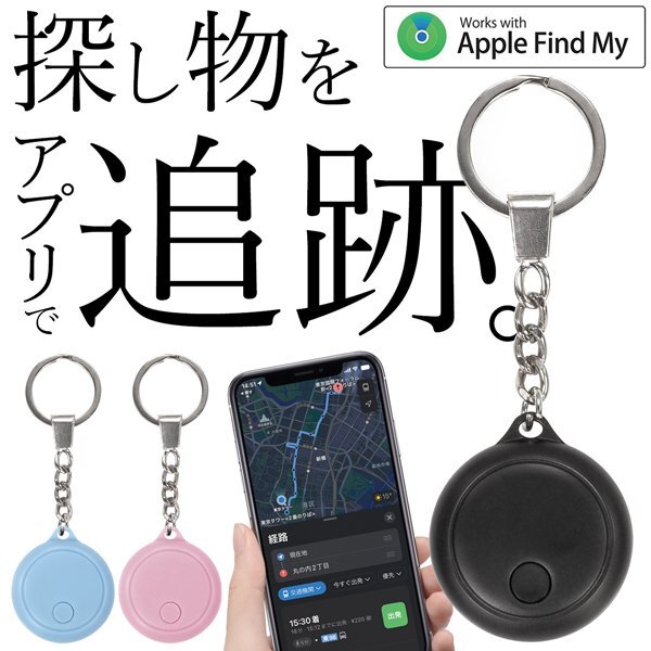 GPS 探し物発見器 iPhone専用 スマートタグ 高性能 キーホルダー 車 移動手段 忘れ物 送料無料 50K◇ トラック&ファインド:ブラック